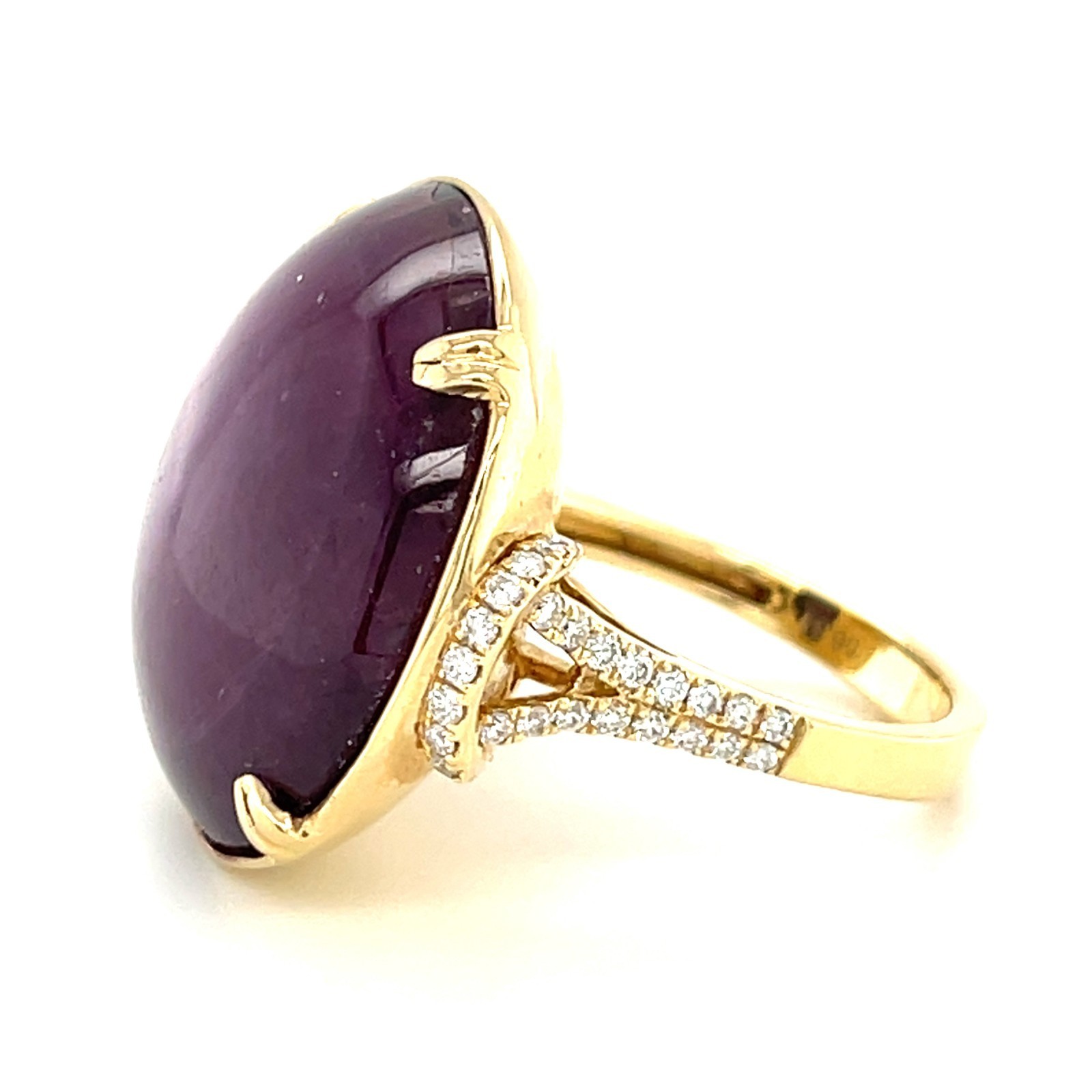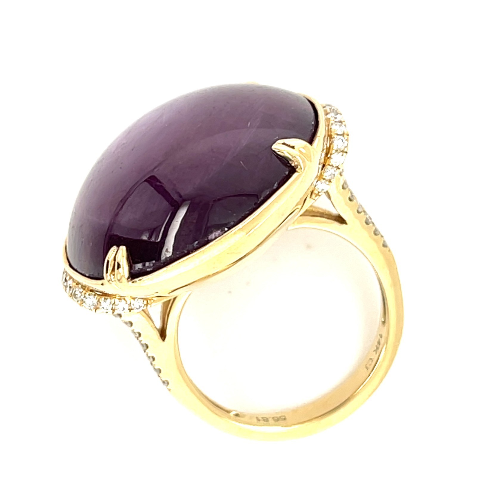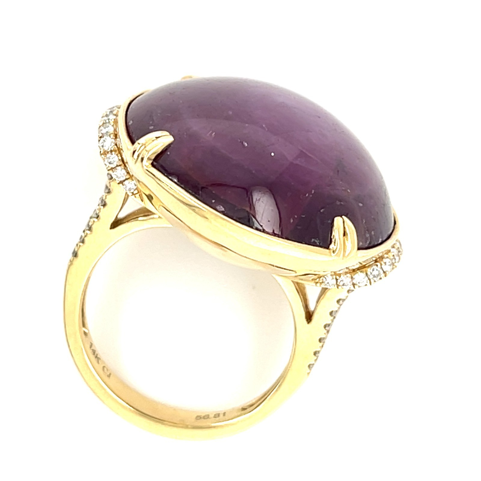 14 carats jaune d'or 56,81 CT Star Ruby Solitaire Ruby avec des accents de diamant Taille 7