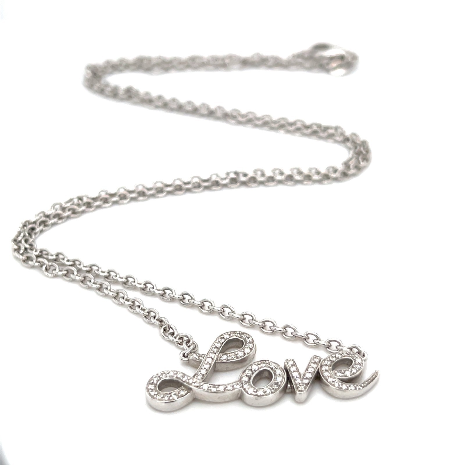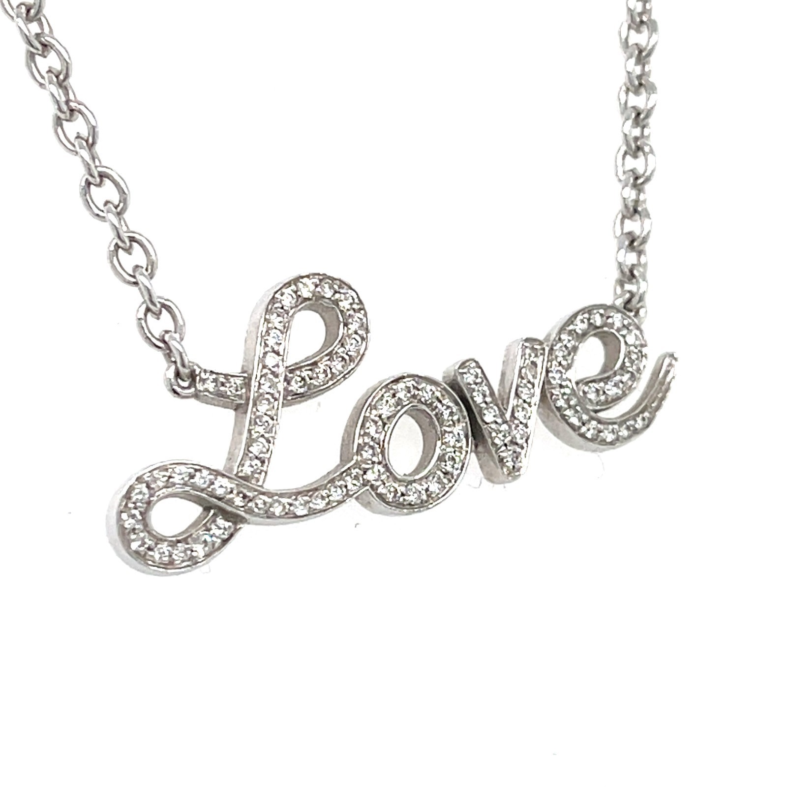 Schone 18k Weißgold und Diamant "Liebe" Halskette