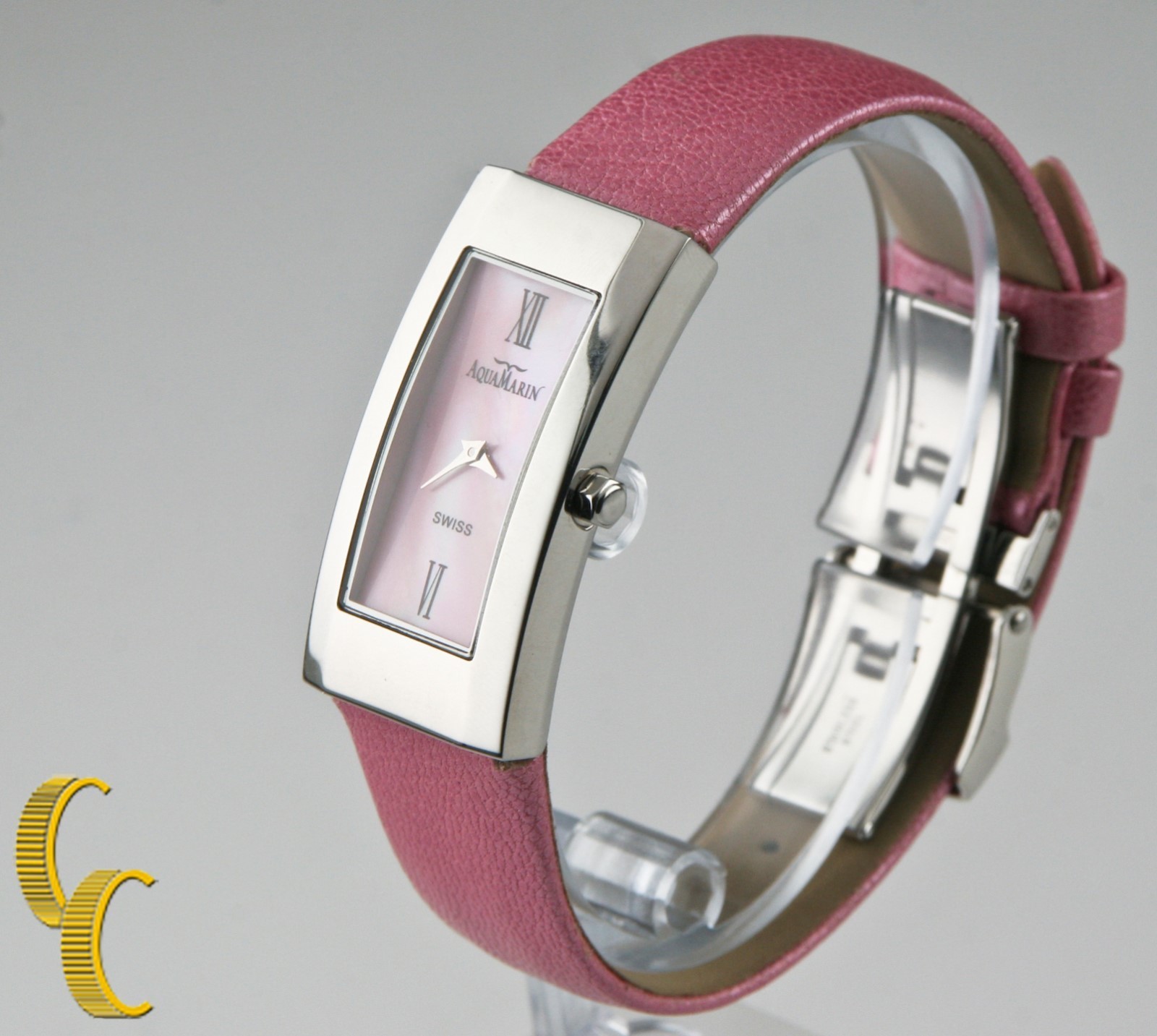 AquaMarin Femmes Acier Inoxydable Montre W/ Cadran Rose Bracelet Cuir AL22103