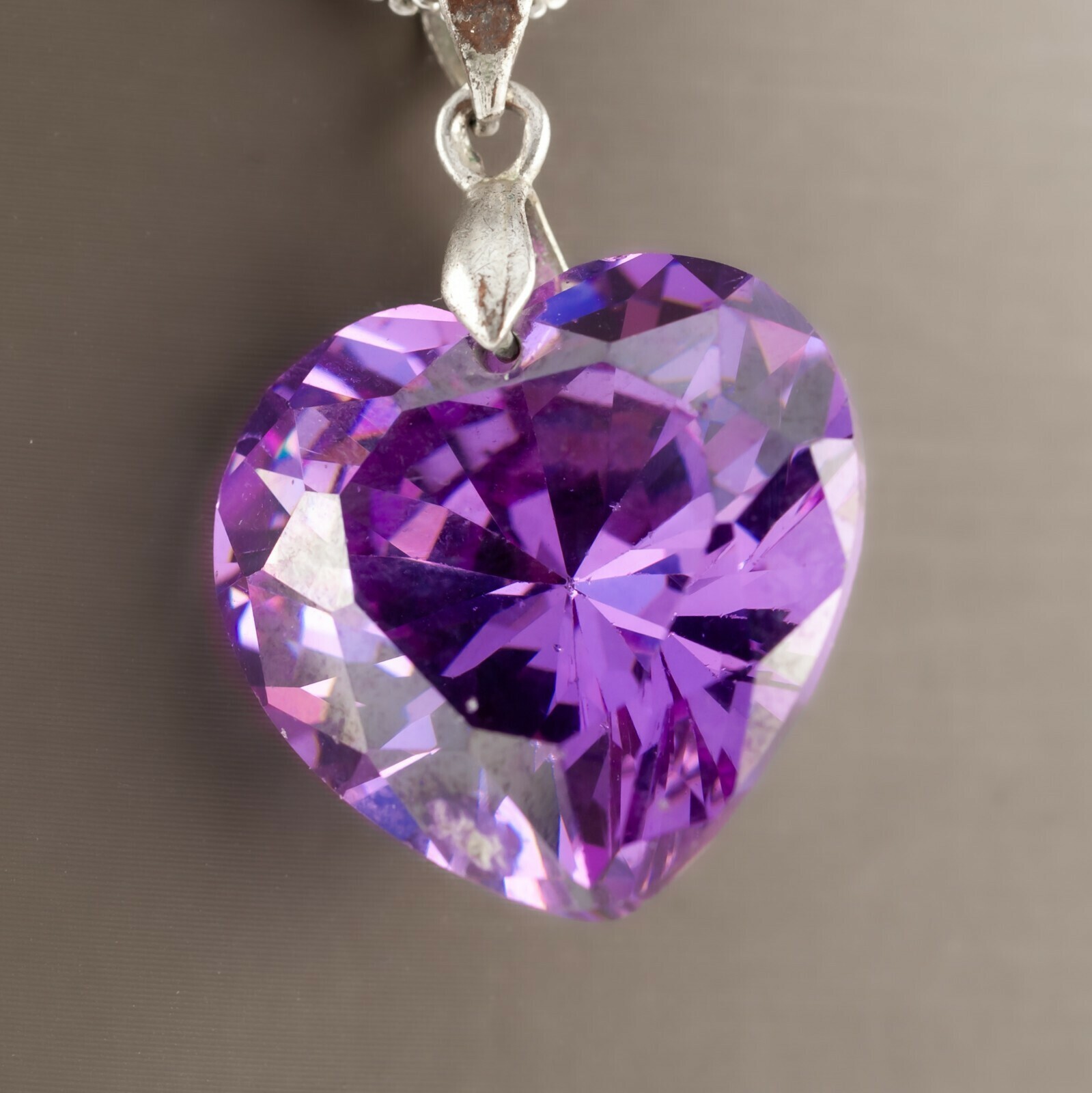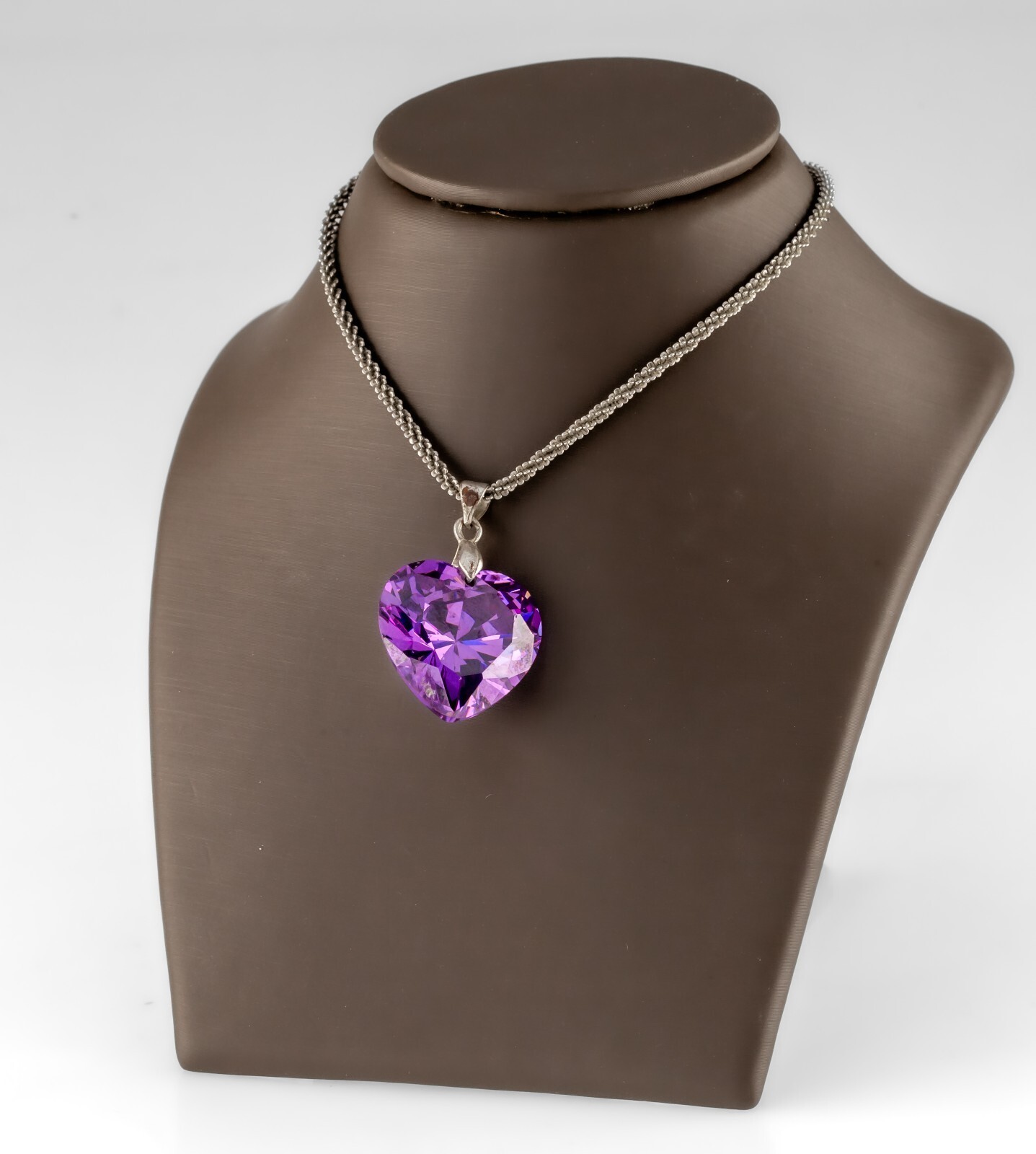 Magnifique pendentif a c?ur d'amethyste en argent sterling 16 "