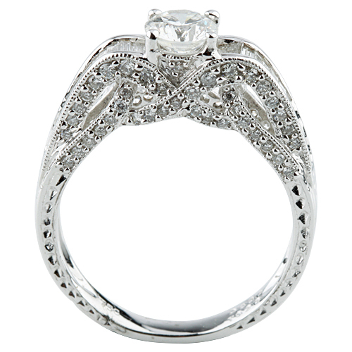 Avec un diamant solitaire soutenu par des diamants set les epaules