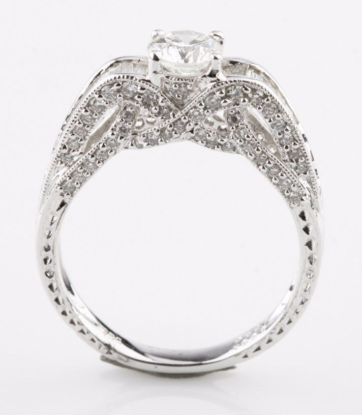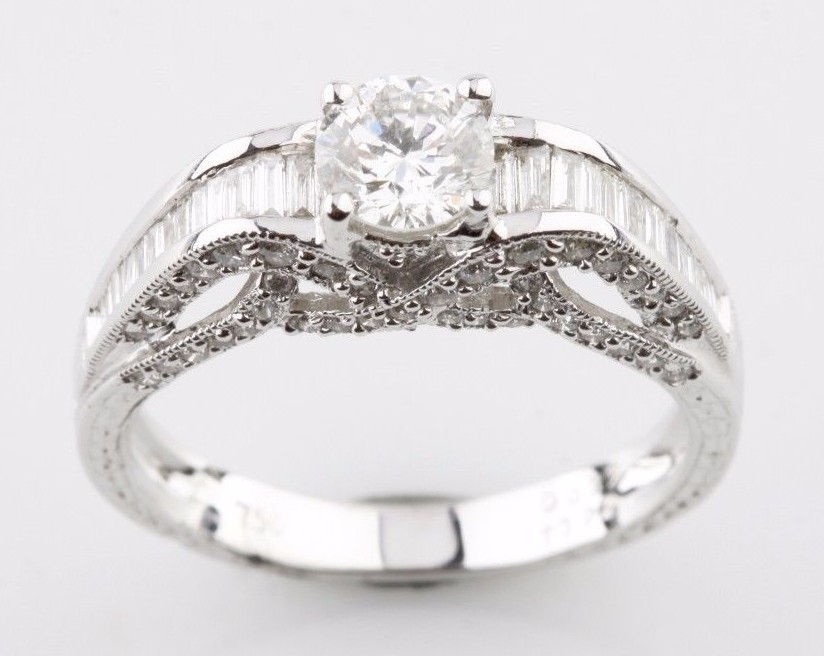 Anneau de fiancailles en diamant a 18K Round Taille 6 avec accents ronds et baguette