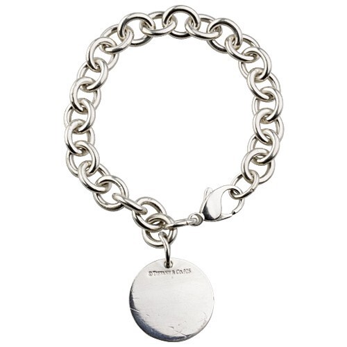 Tiffany Co. Bracelet a charme rond en argent sterling avec logo "deviner"
