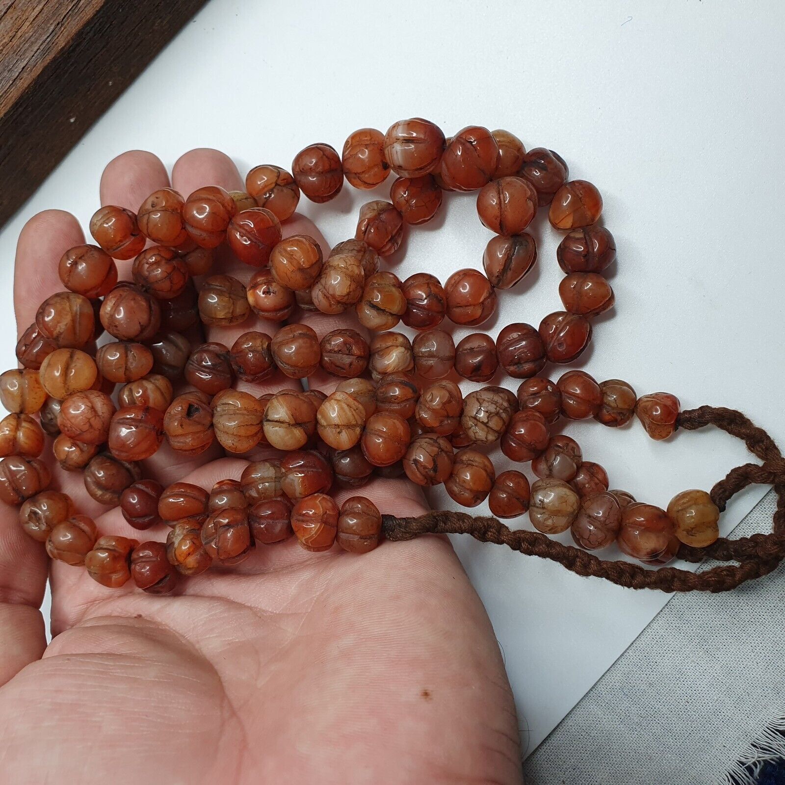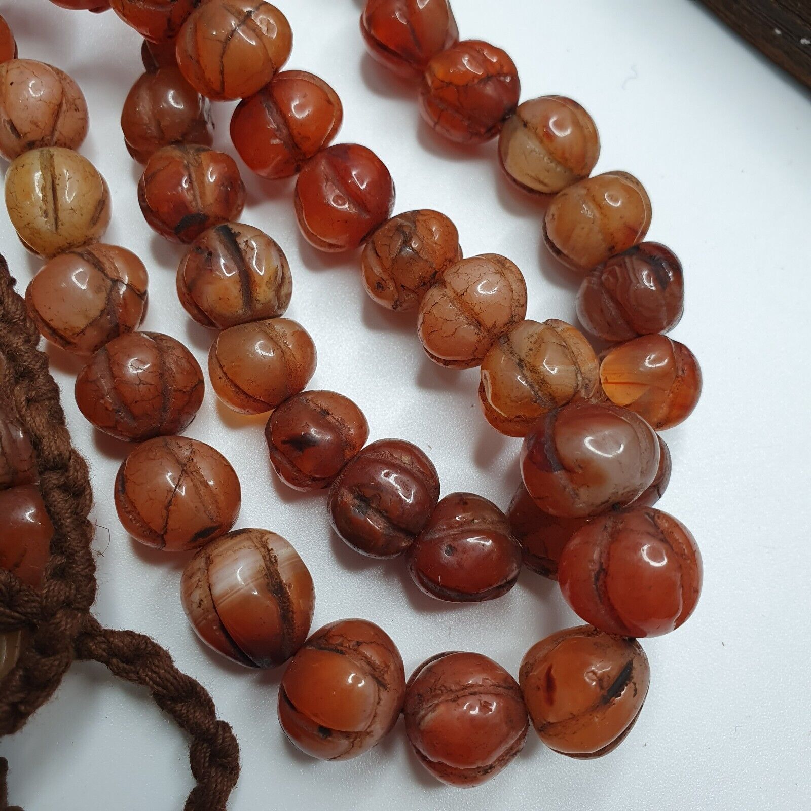 2 Stränge Himalaya Tibetischer Karneol Geschnitzt Achat Melonenform Perlen Ha...