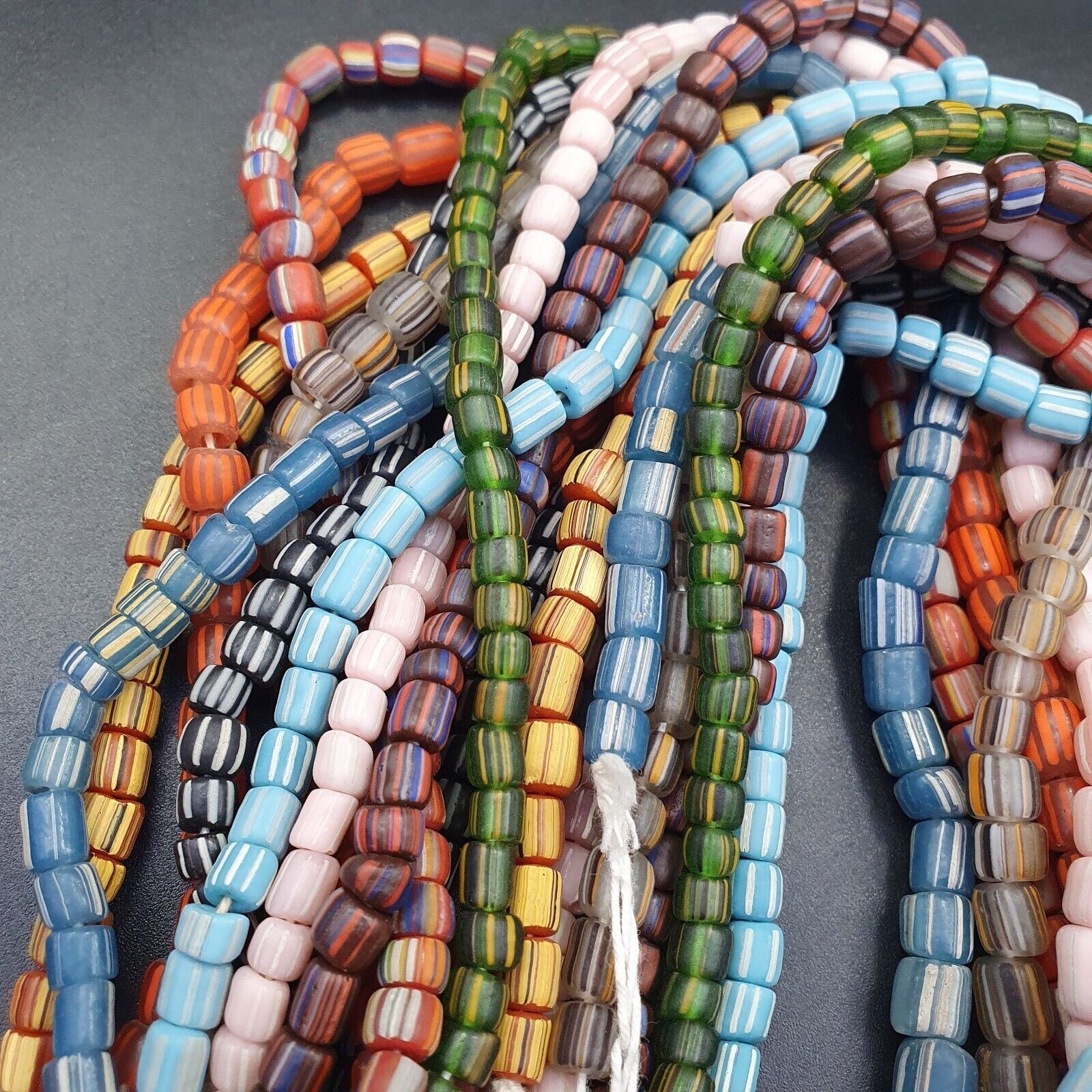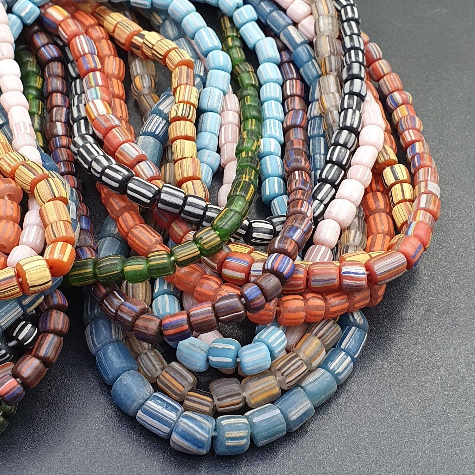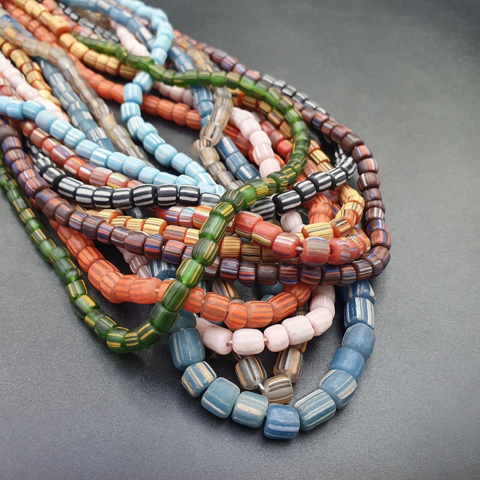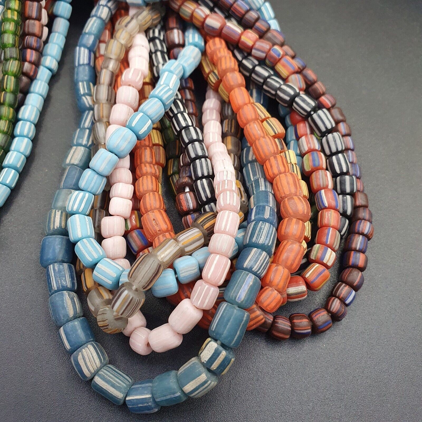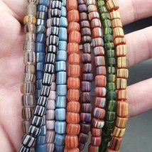 10 Stränge Vintage AFRIKANISCH Multicolor Streifen GLASPERLEN 5-7MM...