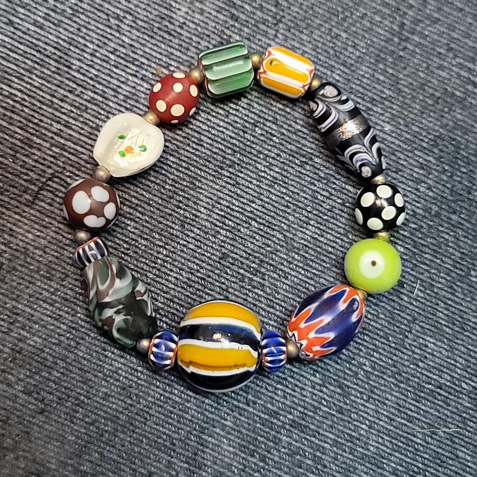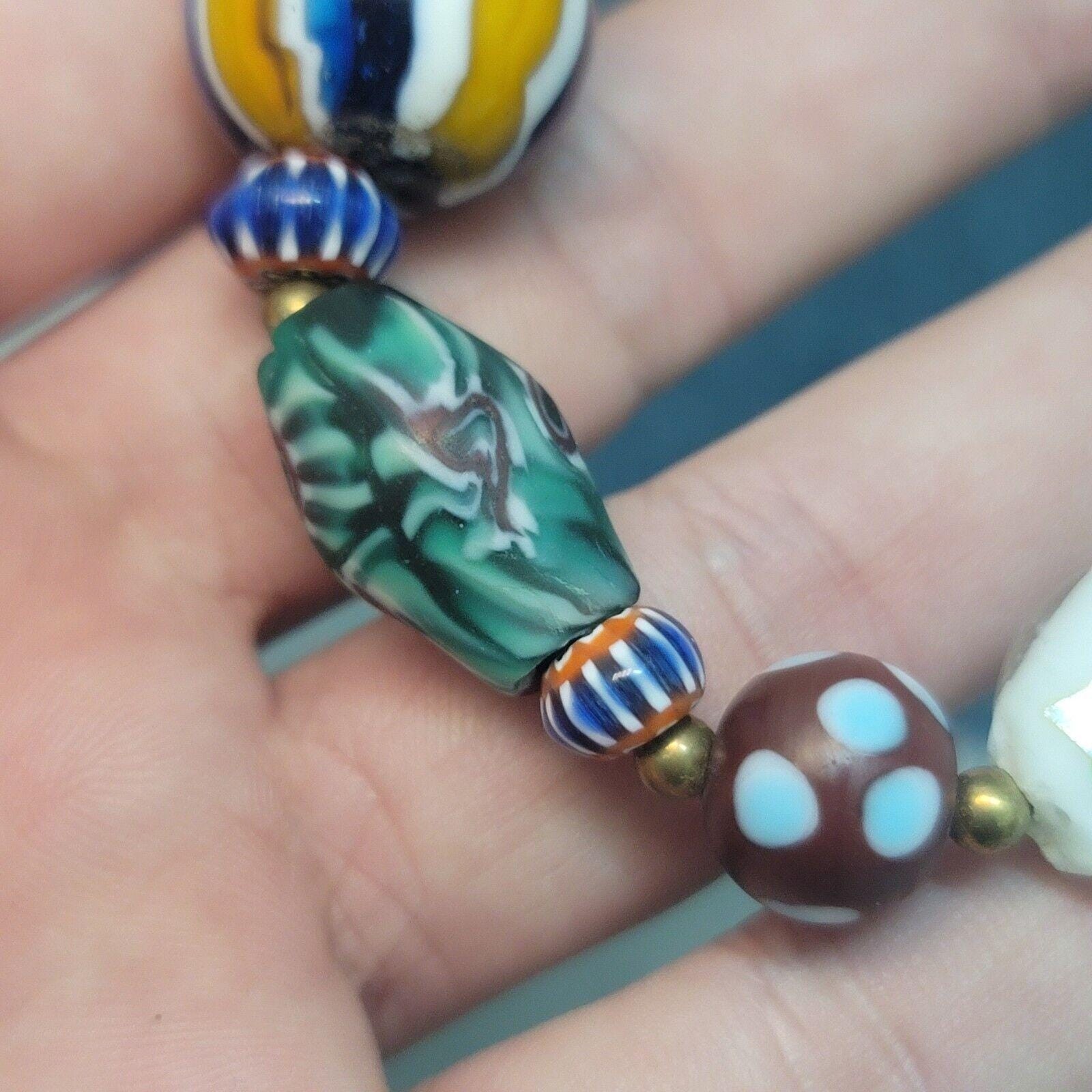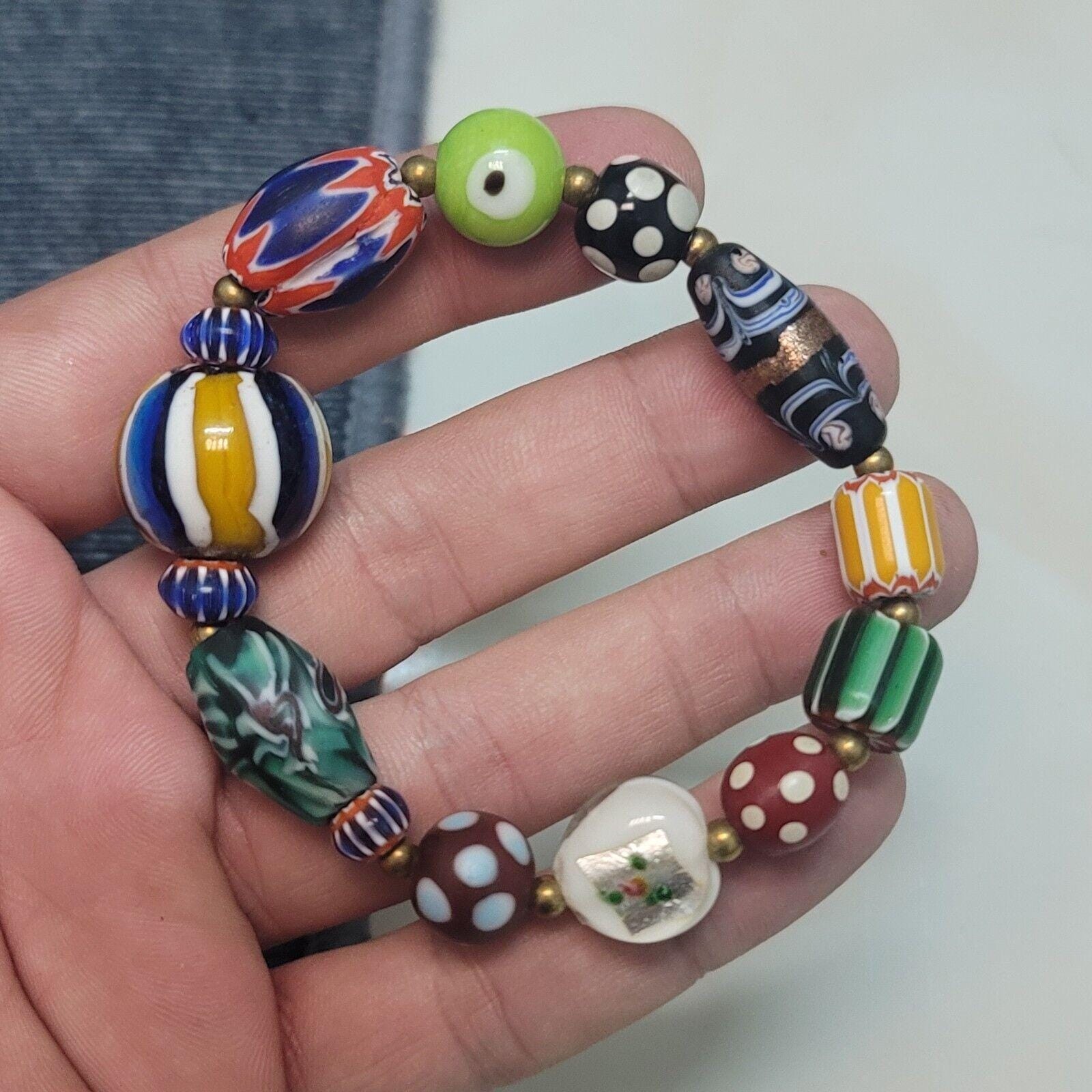 Vintage Beautiful Mix African Venetian Style Glass Beads Collection Bracelet