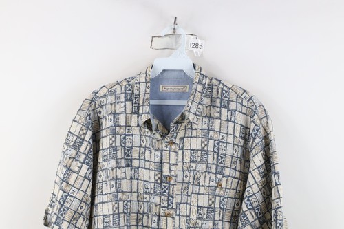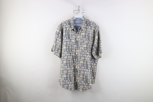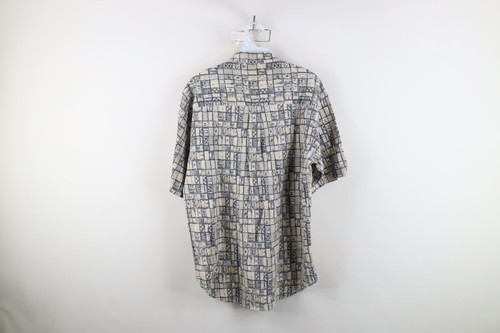 Vintage 90s Streetwear Mens Large Geometric Short Sleeve Collared Button Shirt