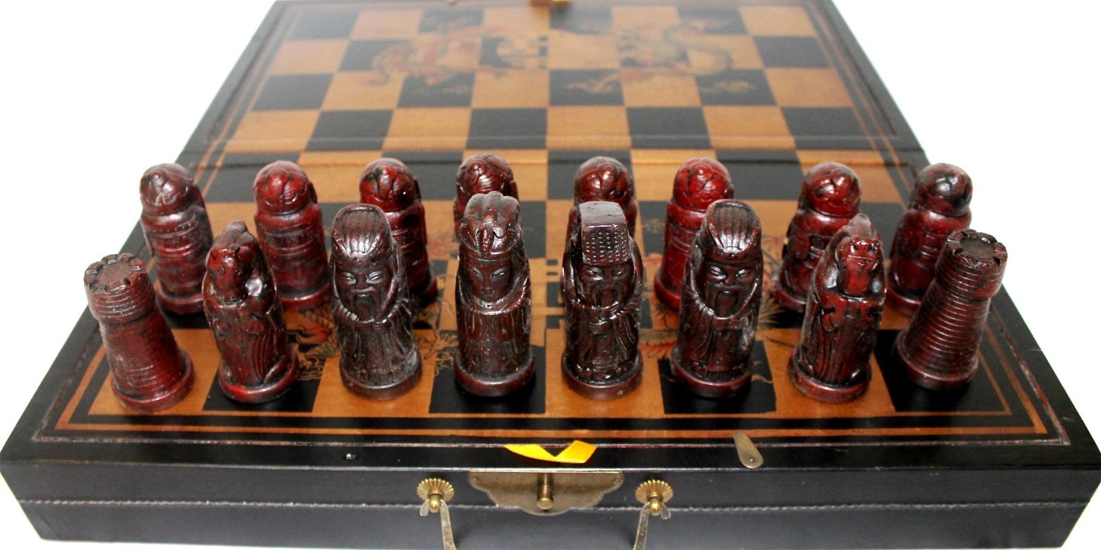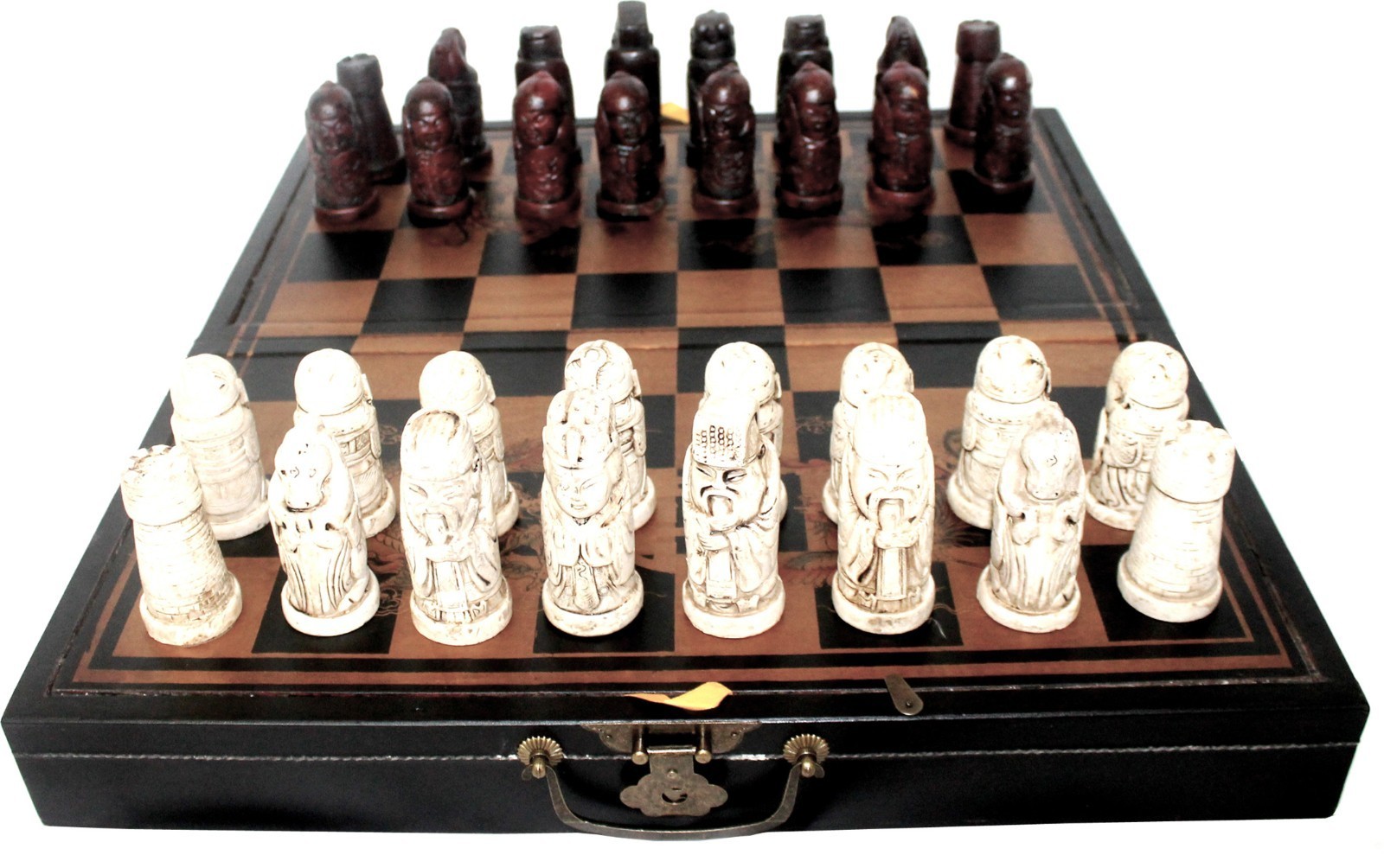 Chess set Ancient chinese 32 resin pieces with nice box and board big black