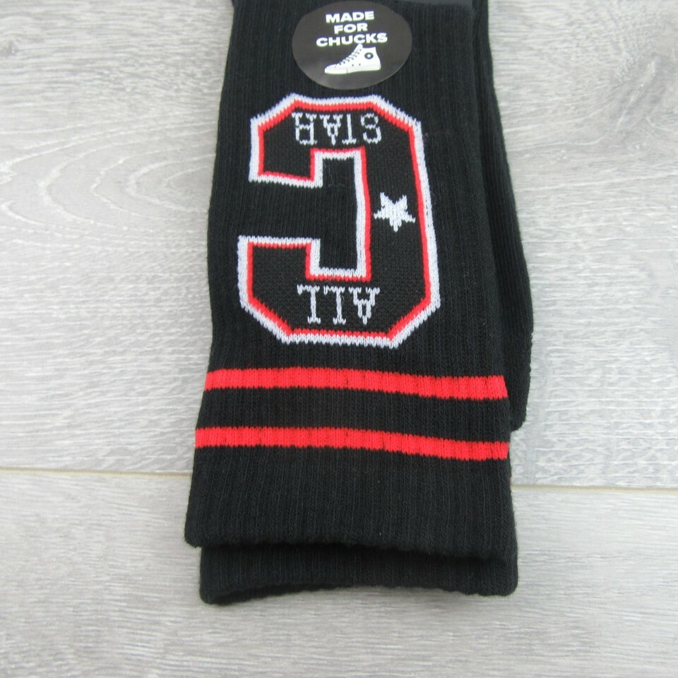 Converse All Star Chucks Varsity Black Red Crew Socks