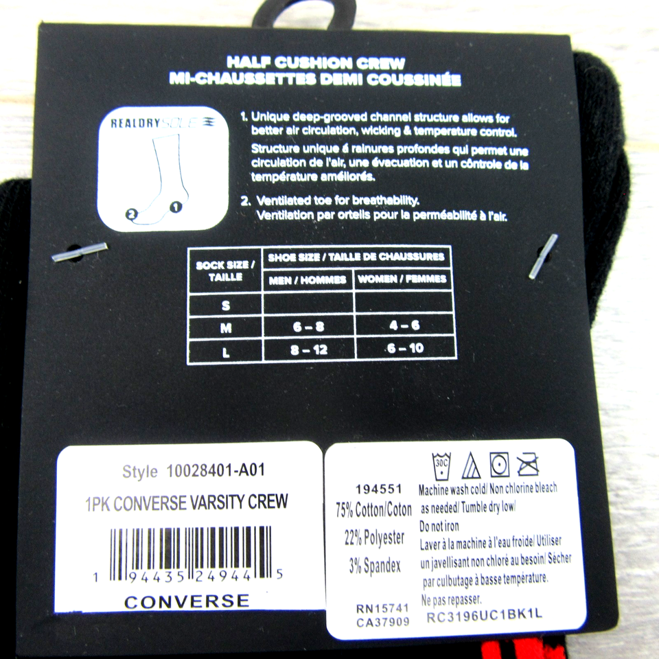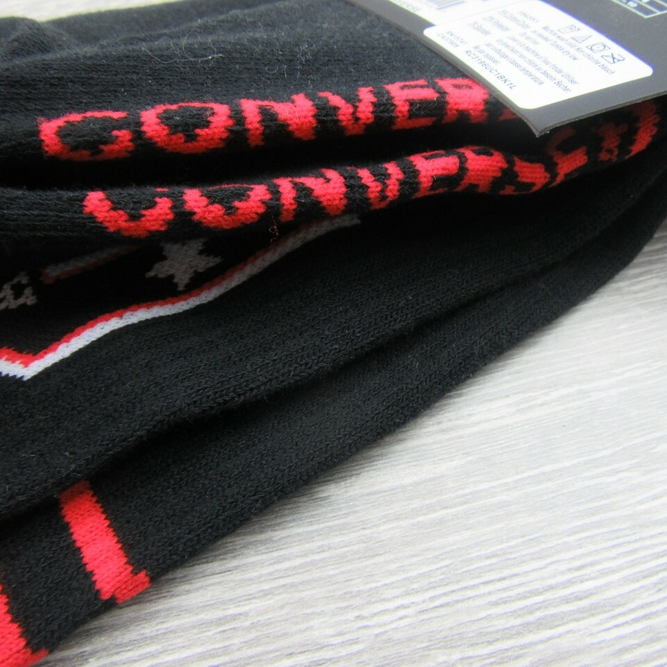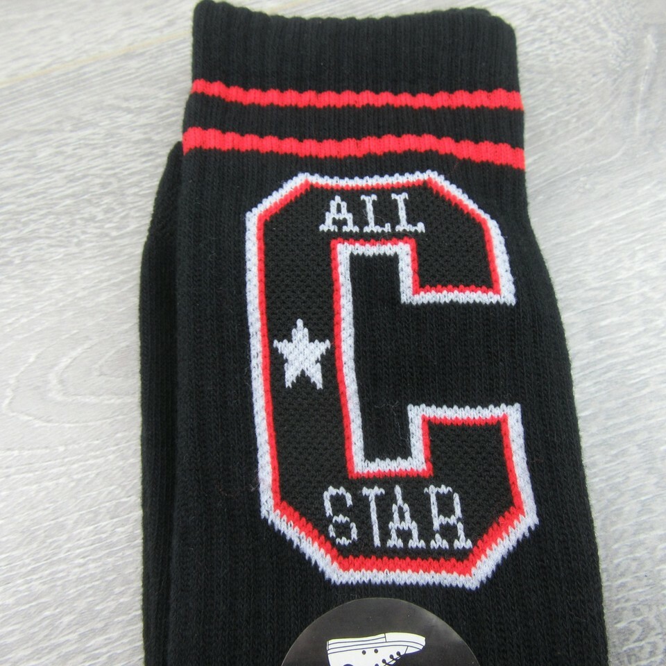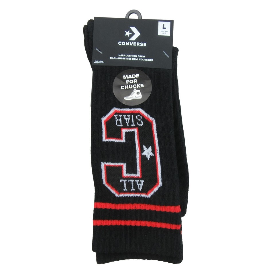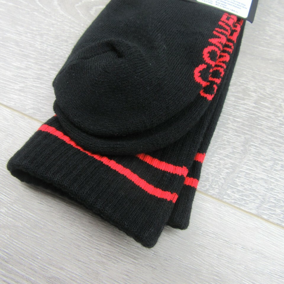 Converse All Star Chucks Varsity Crew Socks Size Large Black Red (1 Pair) NEW