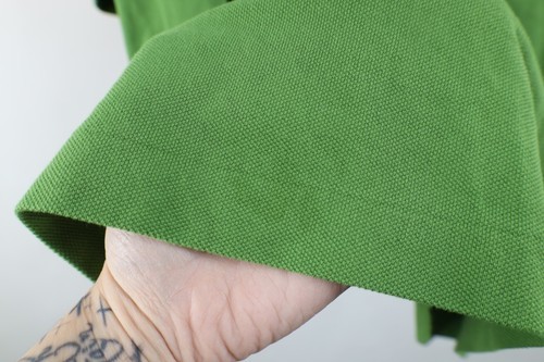 Stains front bottom. Dark spots front, back. Blemishes collar/inner collar, back. Collar, arms discolored. Color faded. Pilling