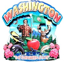 Washington the Evergreen State Artwood Montage Fridge Magnet