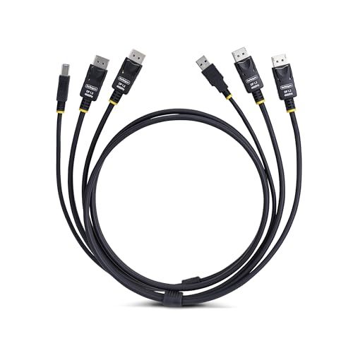 StarTech.com 6ft (1.8m) Dual-DisplayPort and USB 5Gbps KVM Cable, 4K 60Hz, Unive