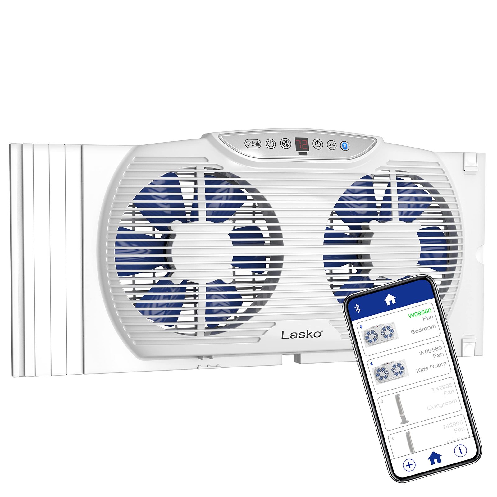 Lasko W09560 Bluetooth Enabled Twin 9-Inch Window Fan with Independent Electrica