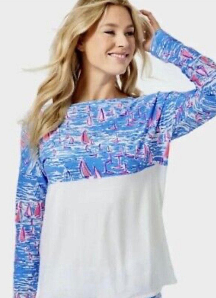 Lilly Pulitzer Finn Top Long Sleeve Zanzibar Blue Boatylicious Size S NWOT