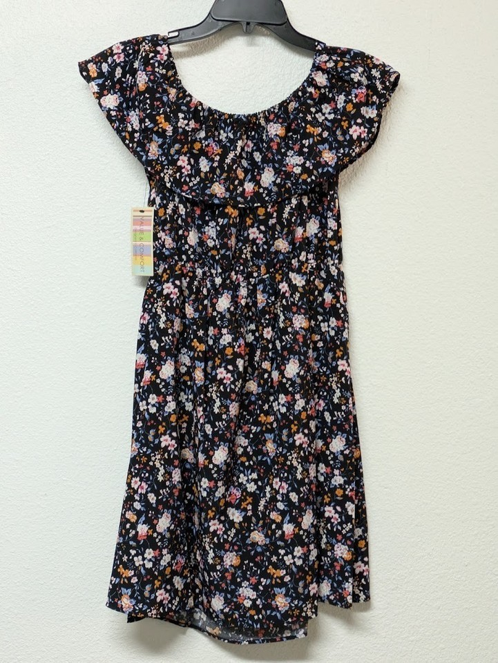Young USA Women's Black Floral Flutter Round Neckline Casual Mini Dress Medium