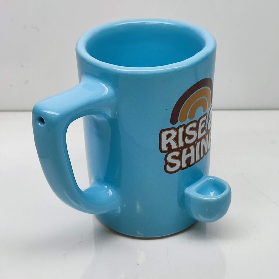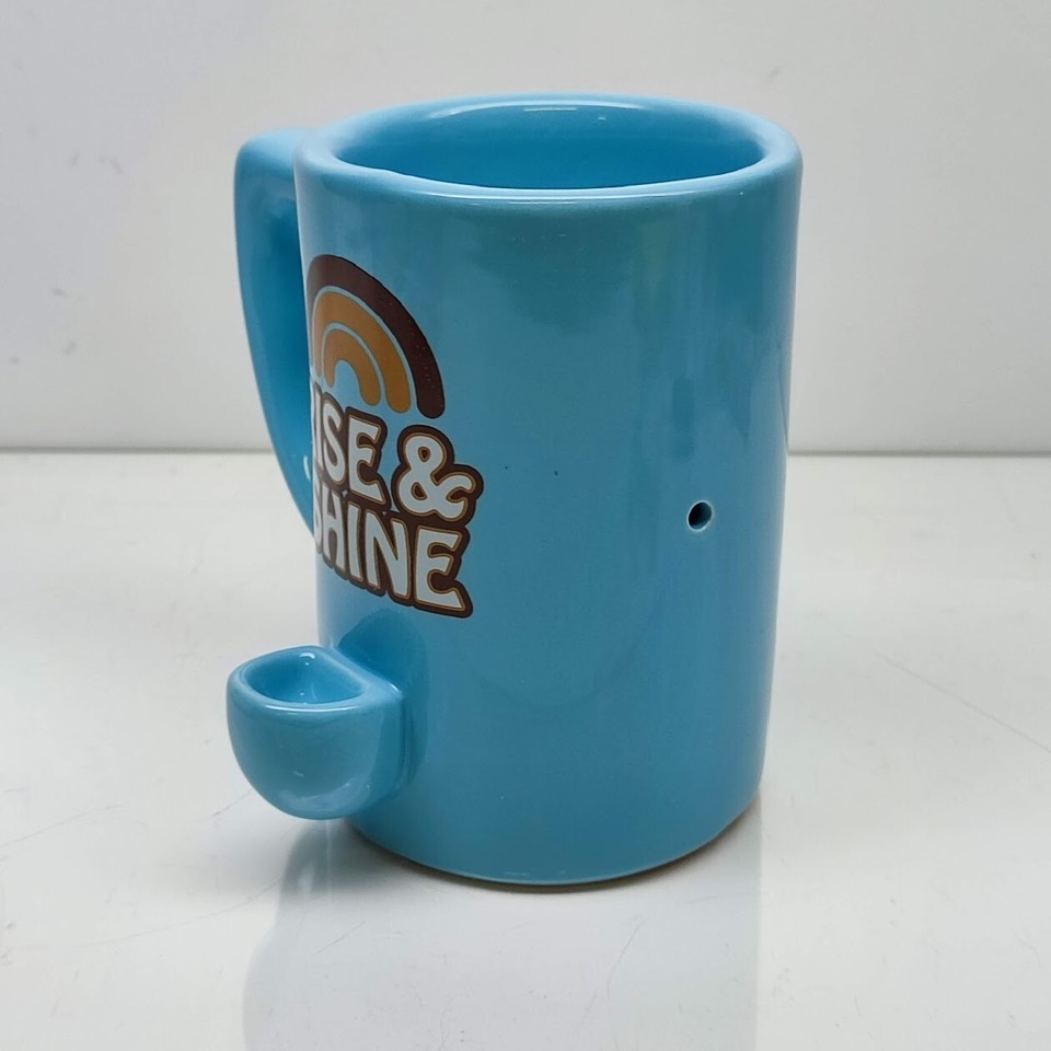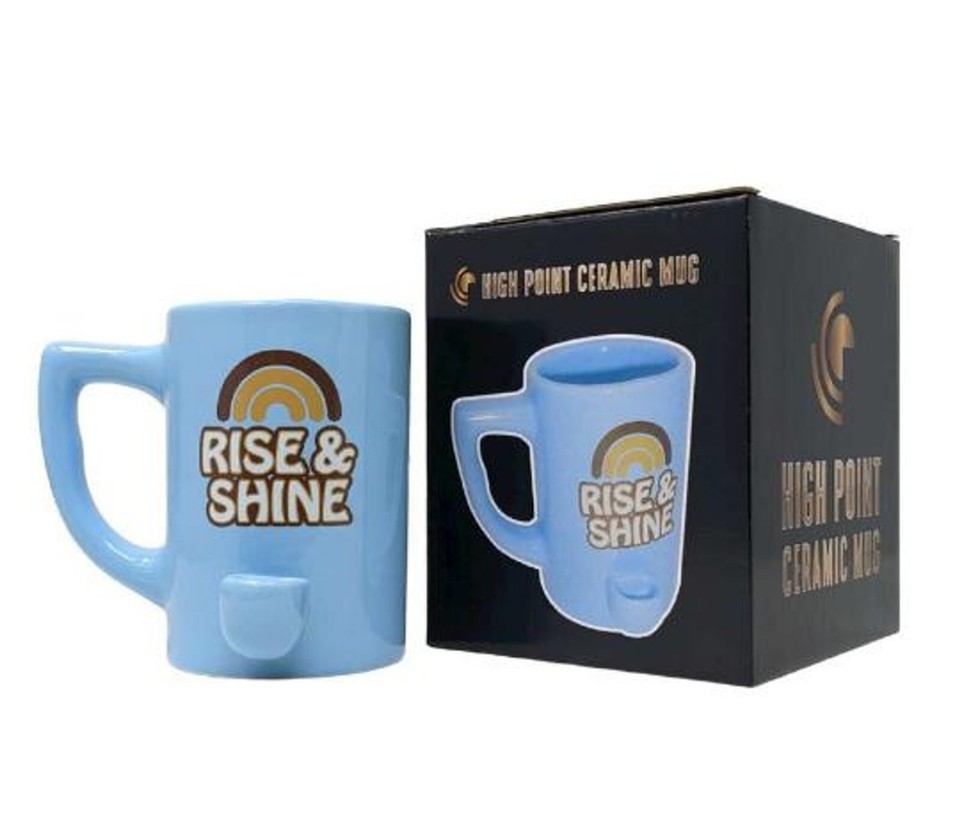High Point Ceramic Light Blue Rise & Shine Coffee Mug Bowl Hand Pipe Smoke Gift