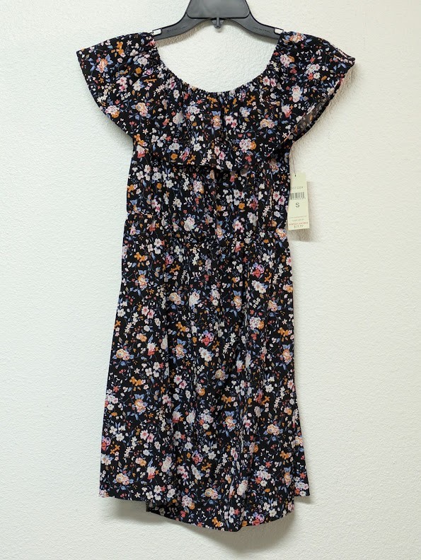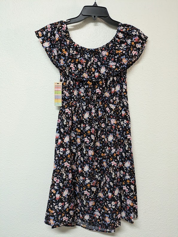 Young USA Women's Black Floral Flutter Round Neckline Casual Mini Dress Large