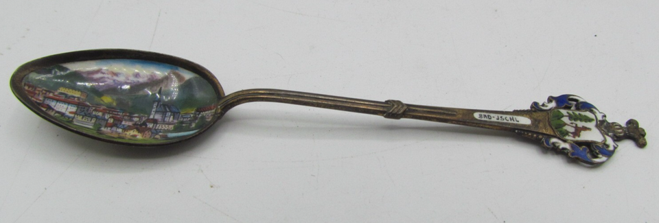 Antique 800 Silver Enamel Souvenir Spoons – Austrian Bad Jschk - has makers mark