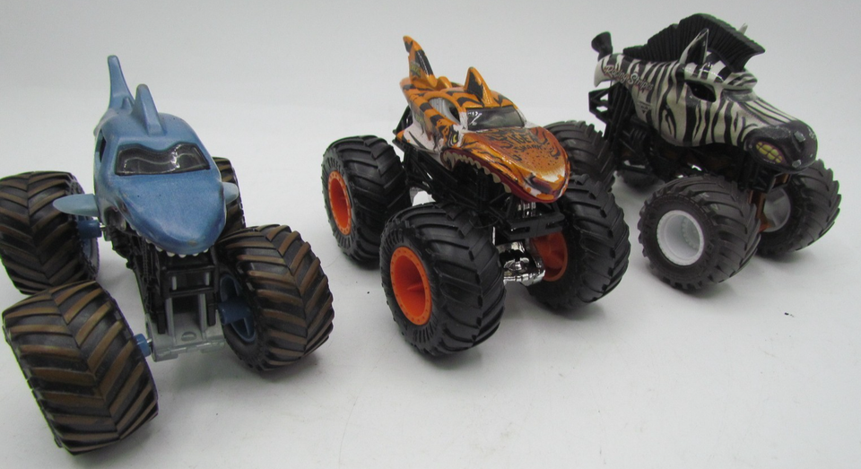 Lot Of 3 Hot Wheels Monster Jam/Diecast Plastic Trucks Toys 1/64 Scale Loose