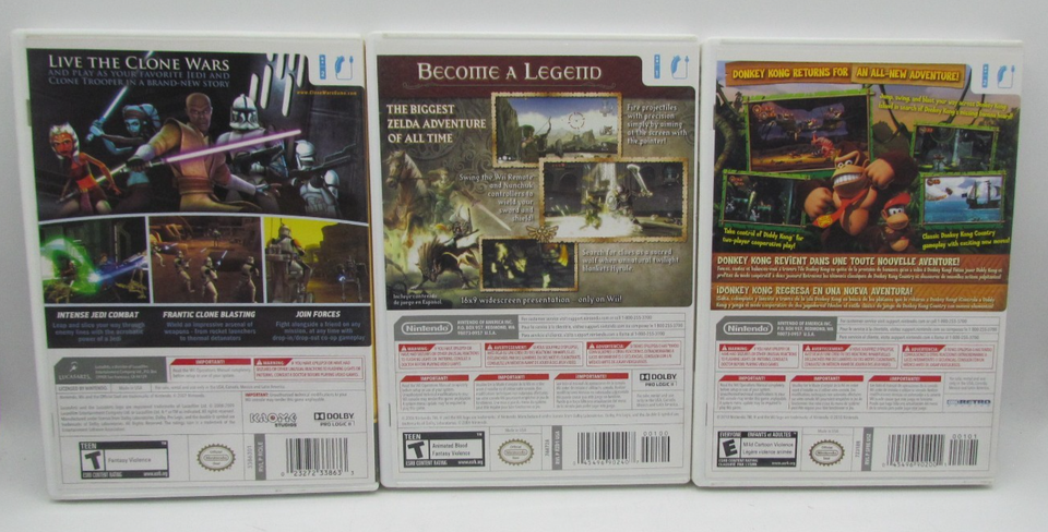 Nintendo Wii Game Lot 3 games Zelda (no book), Clone Wars (CIB), Donkey Kong CIB