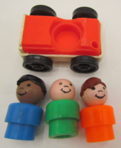 Fisher Price Vintage 1980s Little People Orange Gas Car and three diverse people