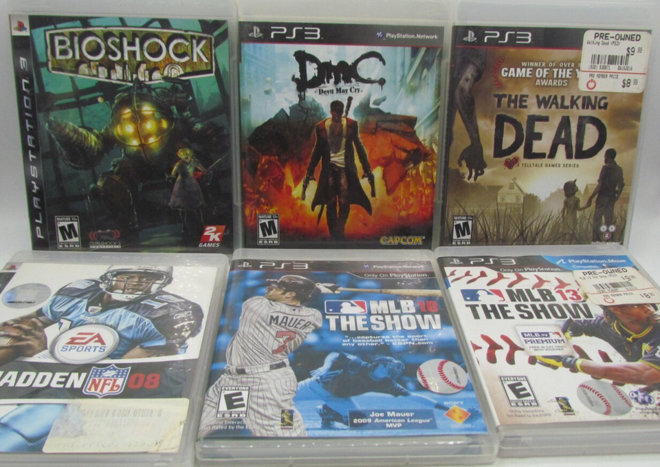 This lot includes six PS3 games, including popular titles such as Bioshock, Devil May Cry, Walking Dead, MLB 10/13 The Show, and Madden 08. The games cover various genres and styles, with a mix of action, survival, baseball, and sports gameplay. Released in 2008, this collection offers players a diverse selection of physical video game software to enjoy on their Sony PlayStation 3 platform. With games from reputable publishers like MLB, this lot provides a variety of entertainment options for gamers.