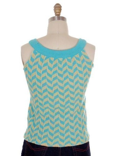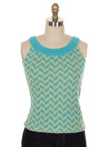 From The Young Naturals comes this 1960s vintage sleeveless wool sweater tank, in vibrant turquoise and yellow chevron knit. A bold Mod, mid-century, preppy piece with a scoop neckline, fitted silhouette, and no lining. Perfect for layering or wearing on its own.