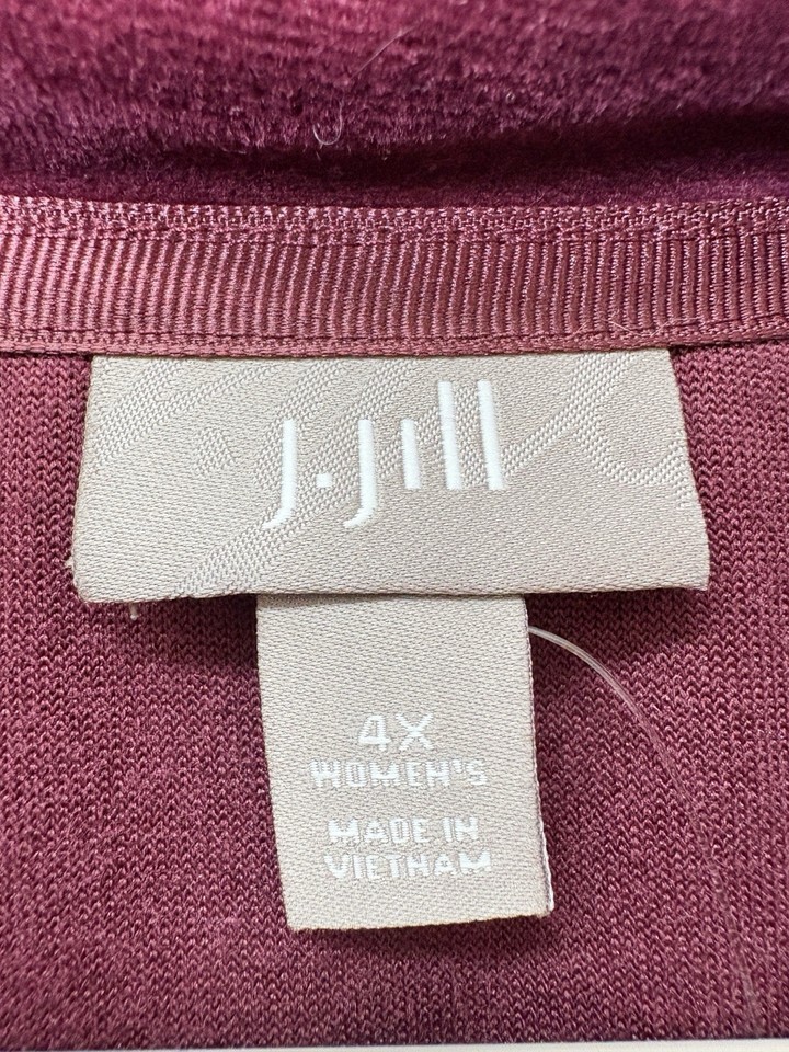 This is a NEW J Jill Velvet Jacket in Womens Size 4X Pockets. Tag reads: Wine. This is a velvet burgundy, not purple as some of the photos appear.