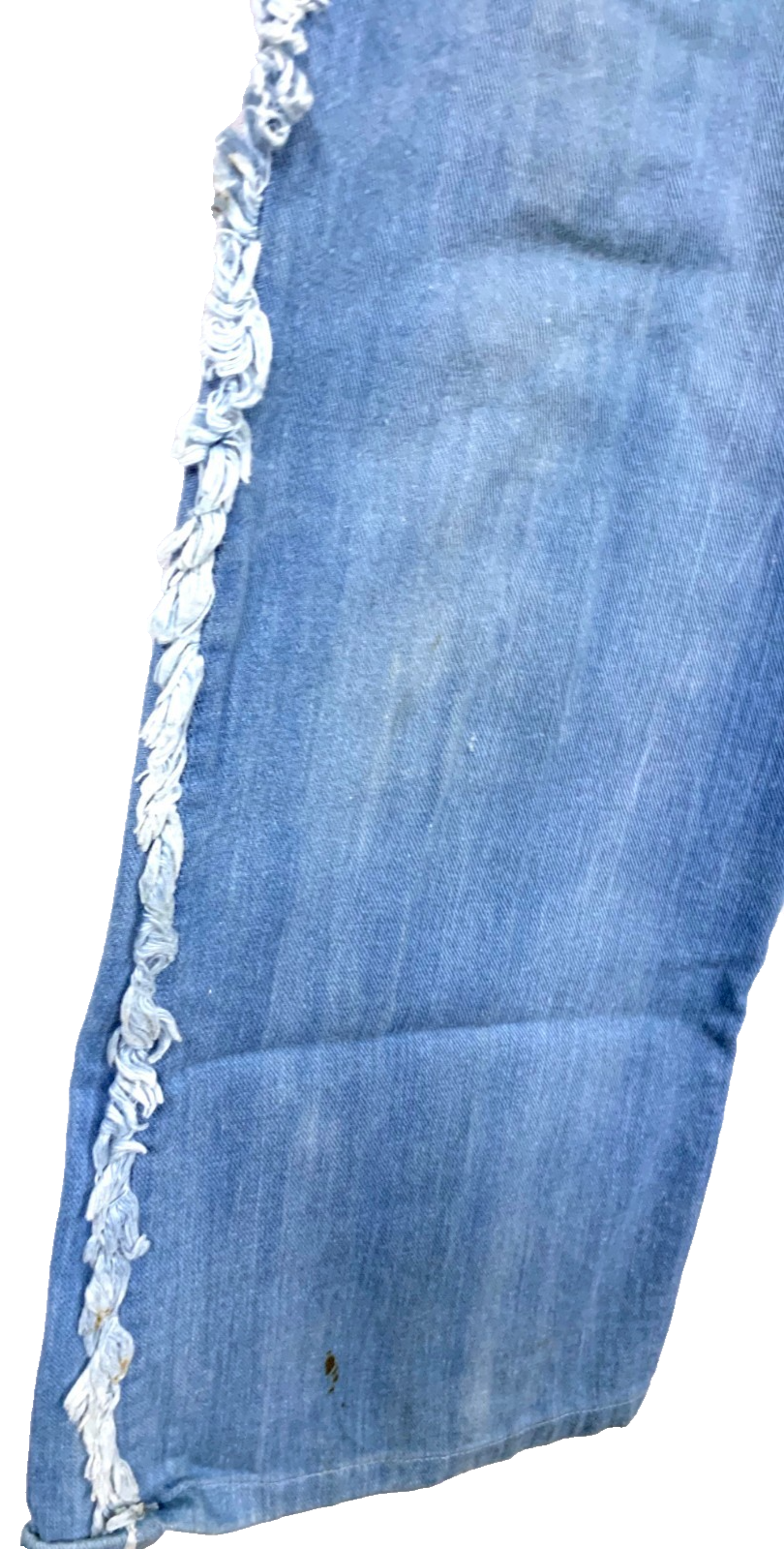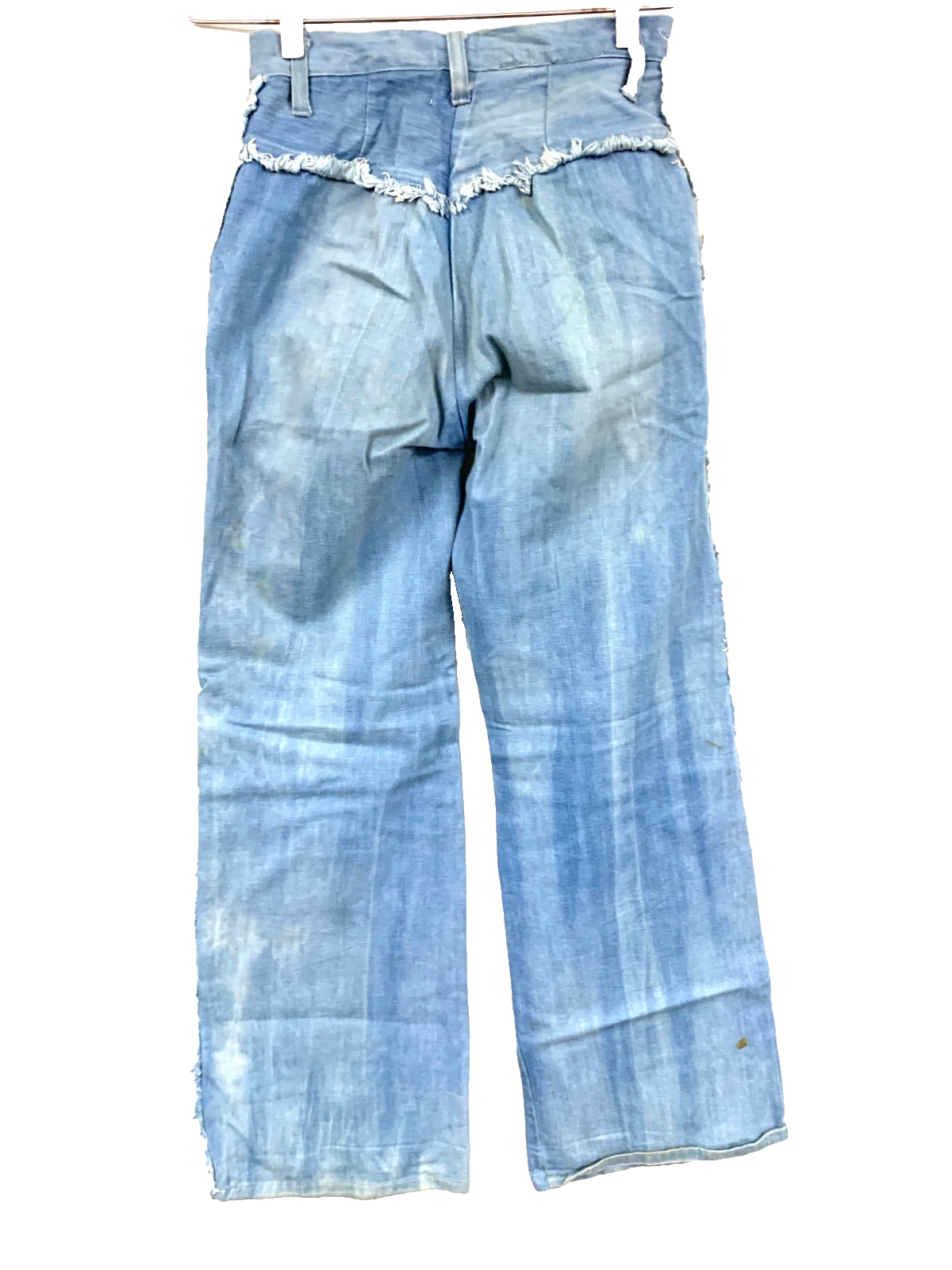 Unlabeled (tag cut out), but strongly consistent with 1970s U.S. denim styles worn by hippies, festival-goers, and disco-era youth. High-waisted bell-bottoms became the decade?s defining jean silhouette, now highly sought-after by collectors and fashion revivalists.
