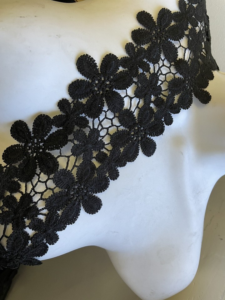 1 Yard Black Venice Floral Double Scalloped Venise Lace Trim 4?. Condition is "New". Shipped with USPS First Class.