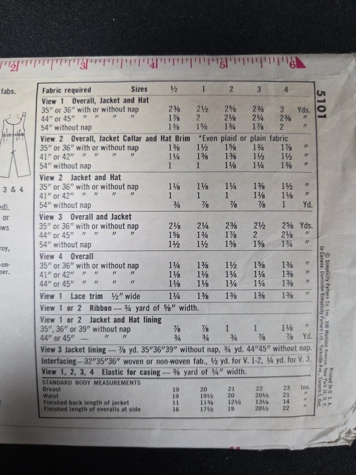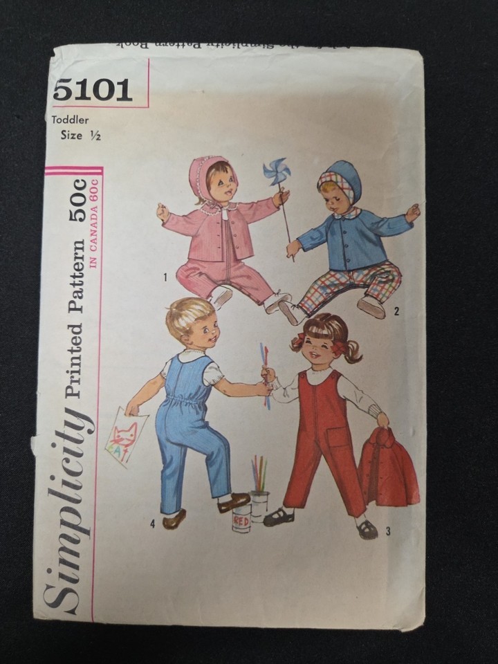 Simplicity Sewing Pattern #5101 Girls 1960s Toddlers Overalls Jacket Hat Sz 1/2 . Condition is Used. Shipped with USPS Ground Advantage.