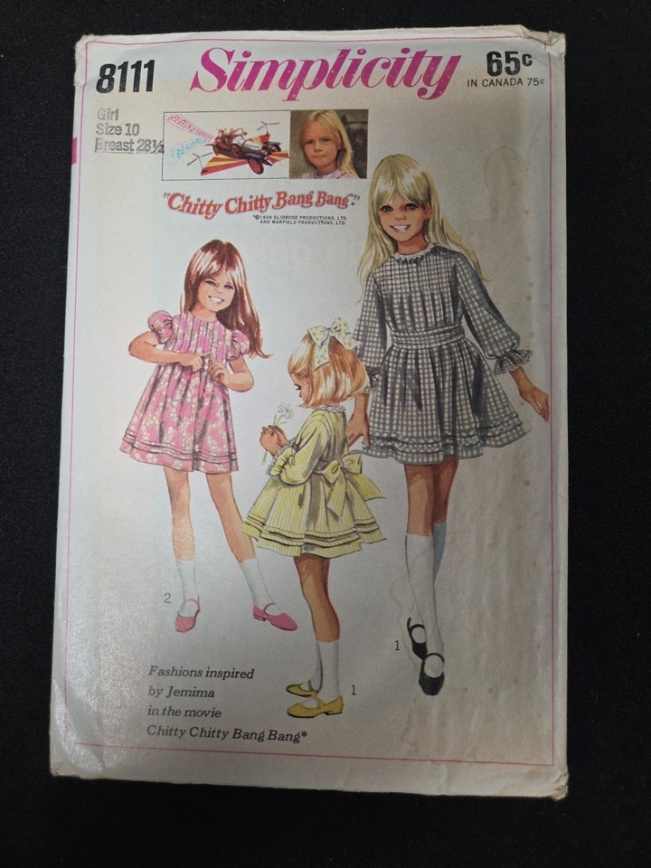 Simplicity Pattern 8111 Chitty Chitty Bang Bang Sz 10 Girls Dresses 1969 Vintage. Condition is Used. Shipped with USPS Ground Advantage.