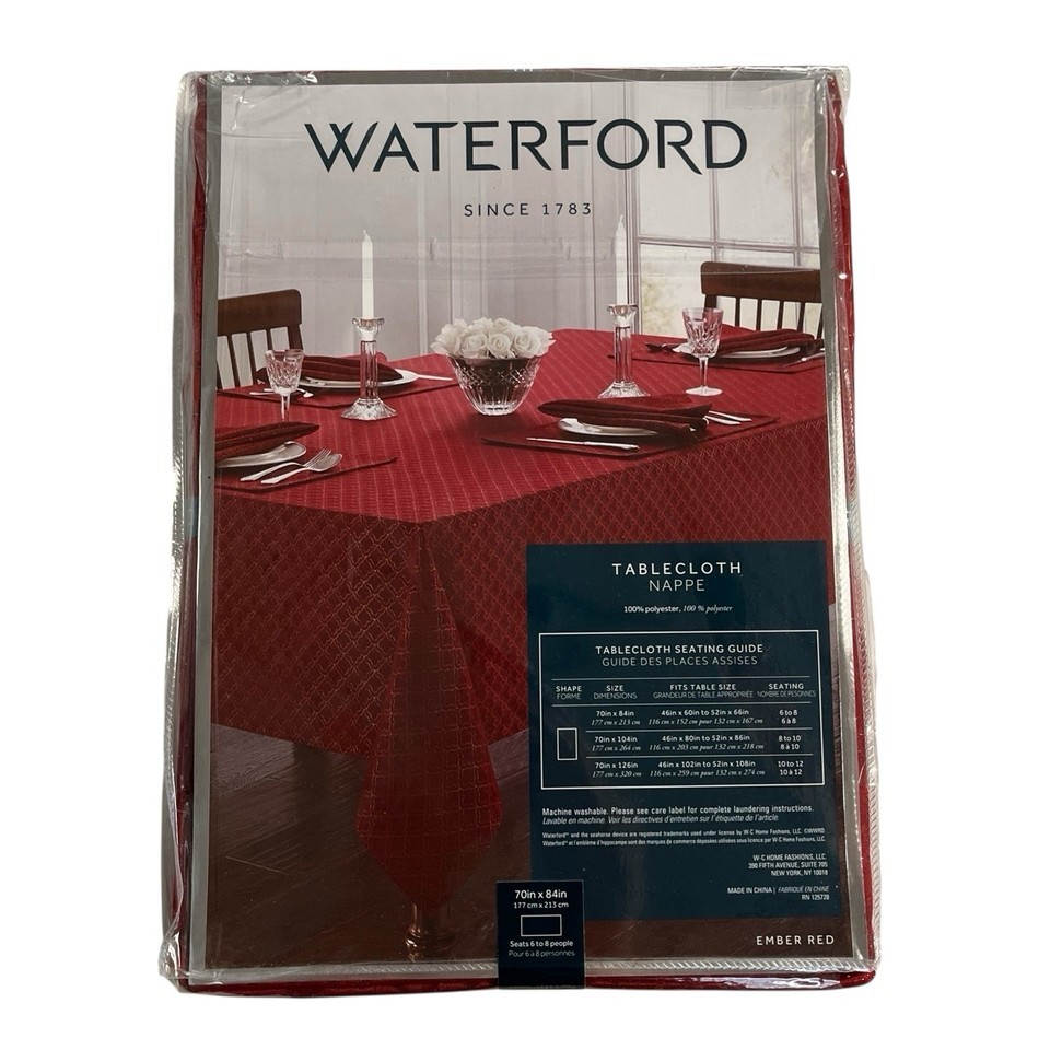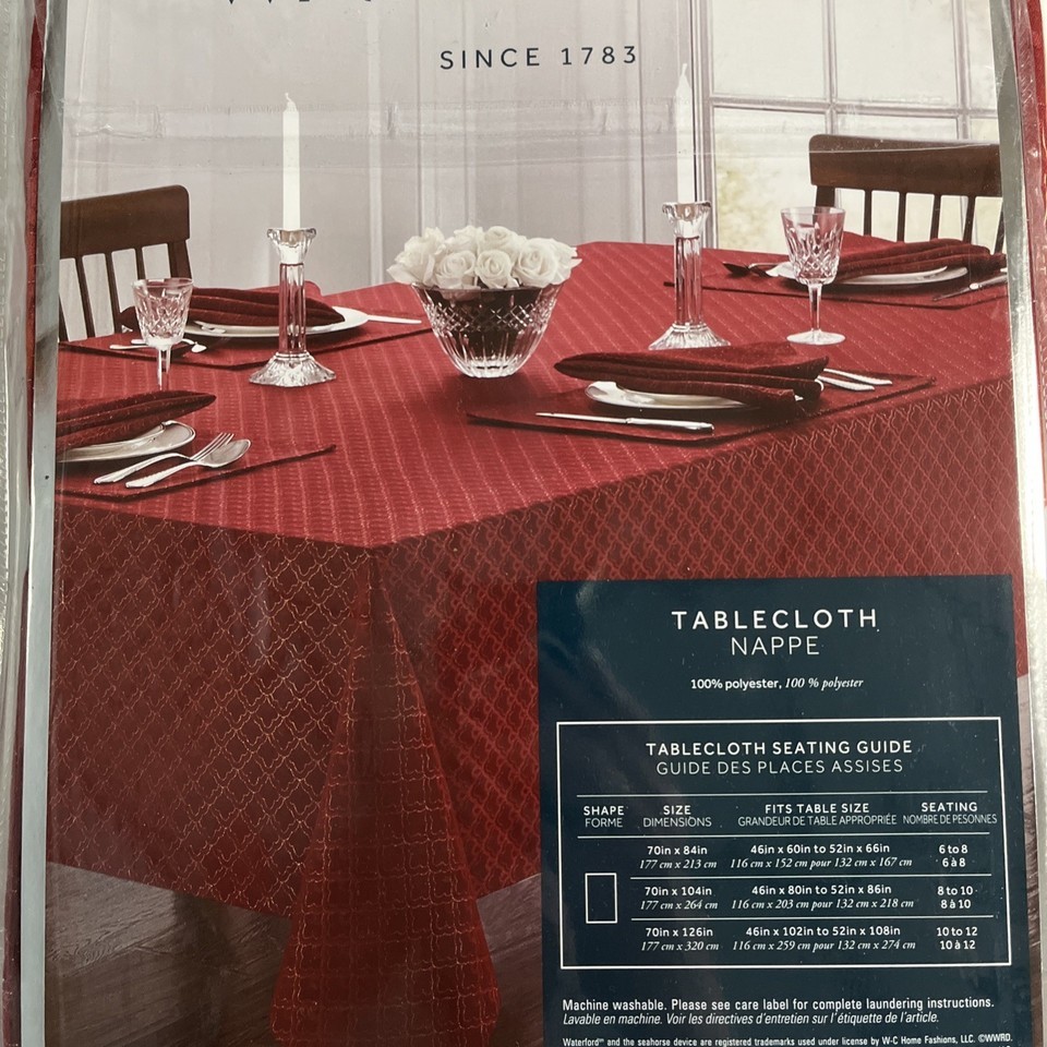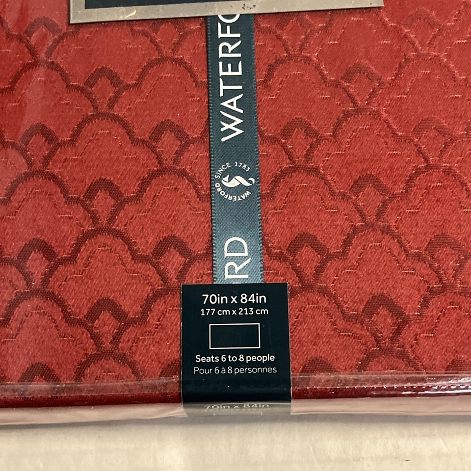 Waterford Tablecloth Red Ember Silver Geometric 70x84 Luxury Holiday Christmas