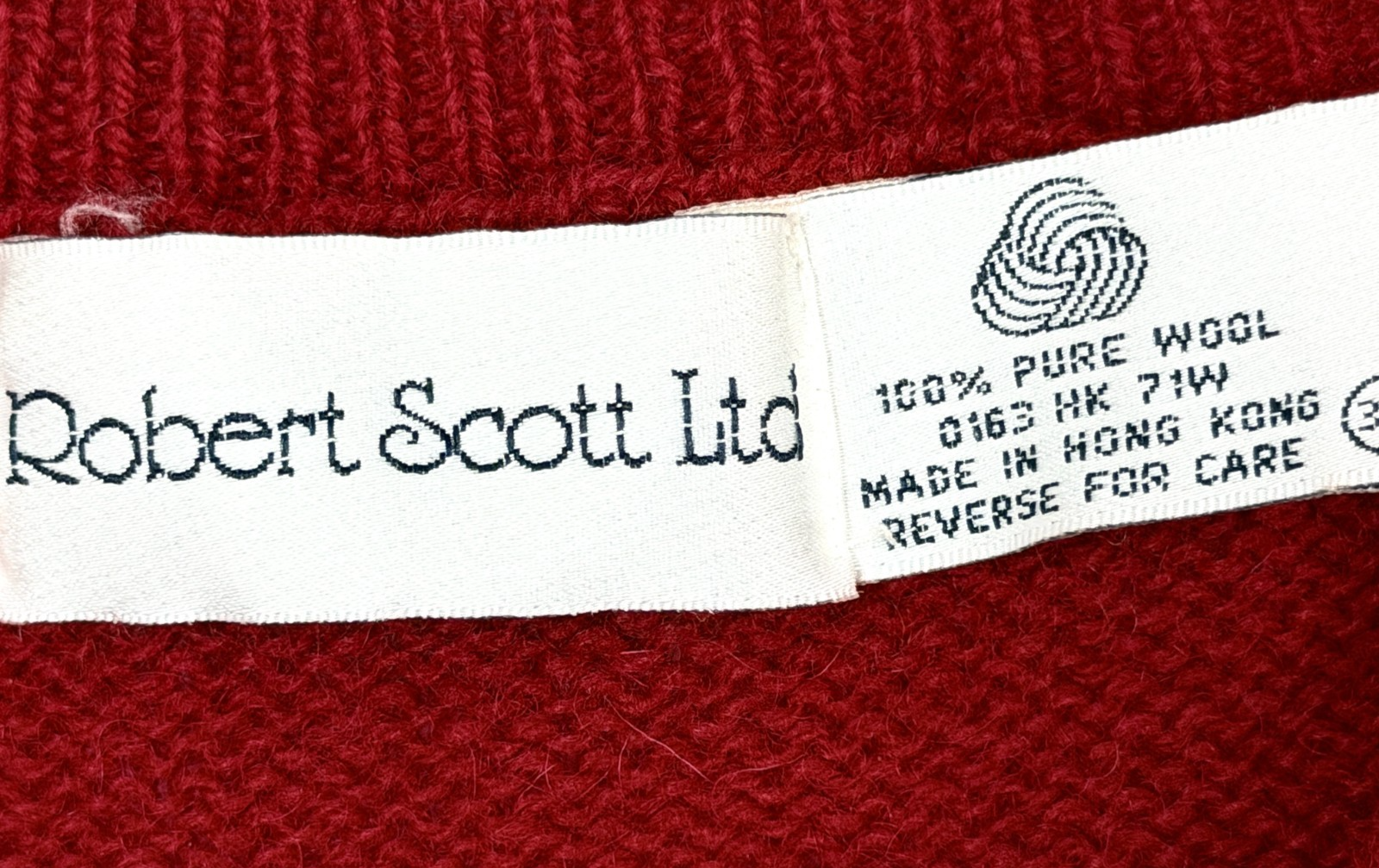 Robert Scott Ltd. produced high-quality Scottish woolens for export to the U.S. and U.K. boutique markets through the mid-20th century. Their whimsical motifs and luxury knits are now sought after by collectors and retro stylists alike.