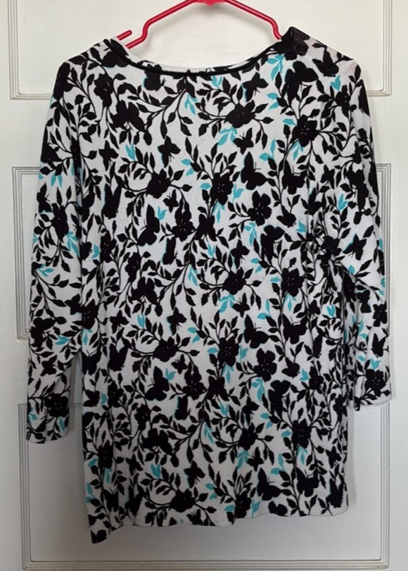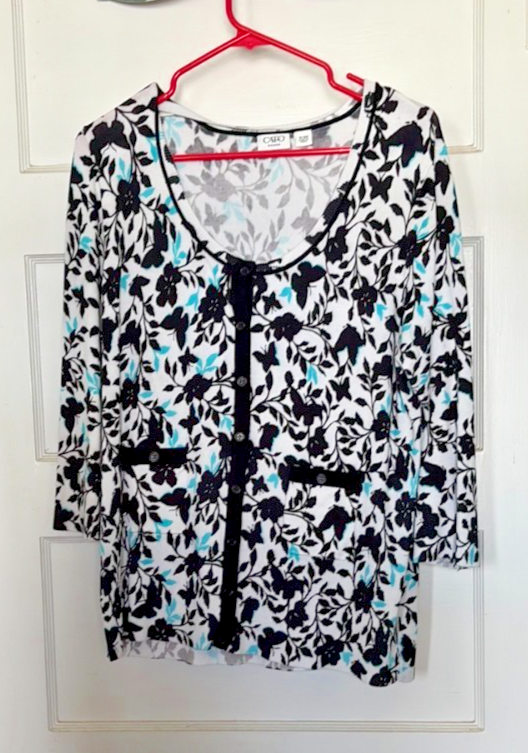 Cato Black and Blue Floral Women's Cardigan Sweater Size 14/16W
