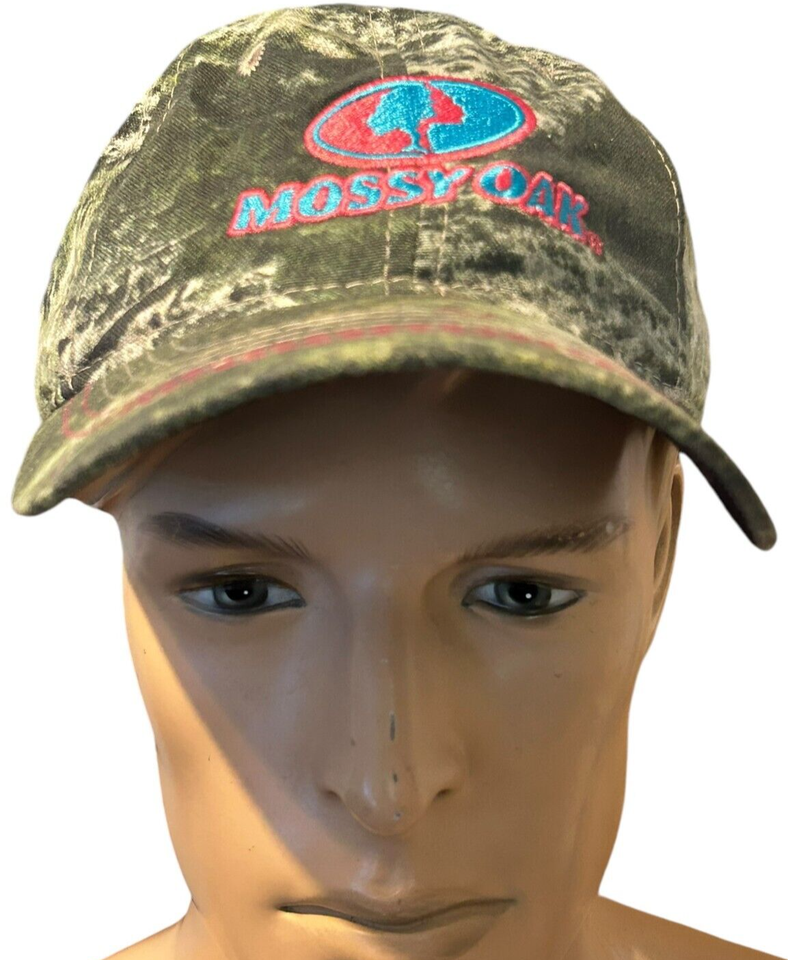 Mossy Oak Green Women's Hat Embroidered Blue/Pink Logo Adjustable Hook Loop