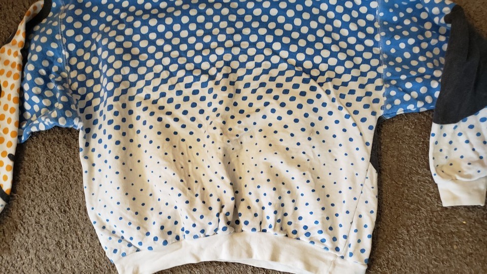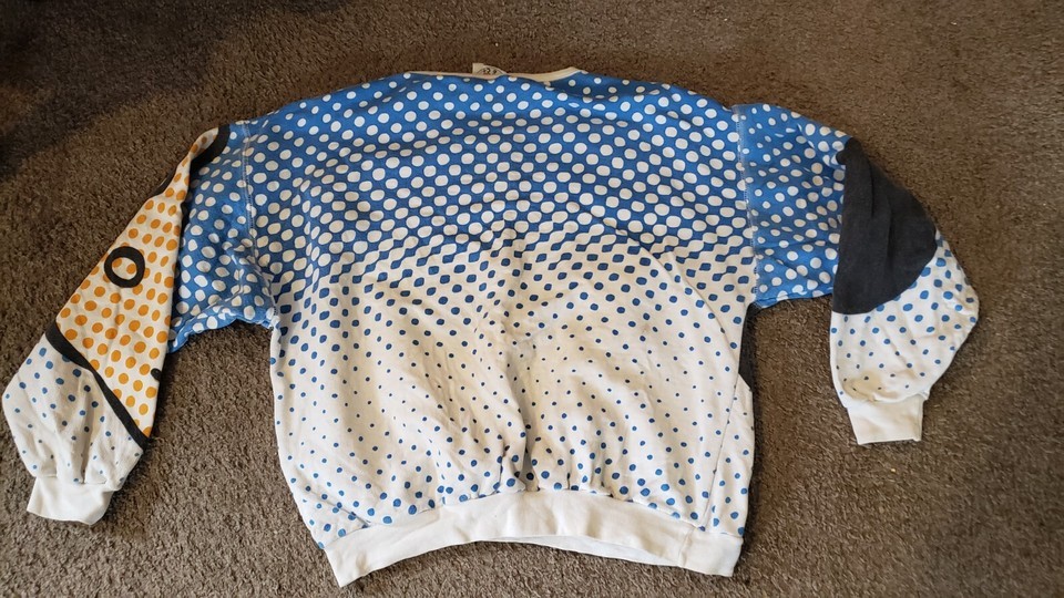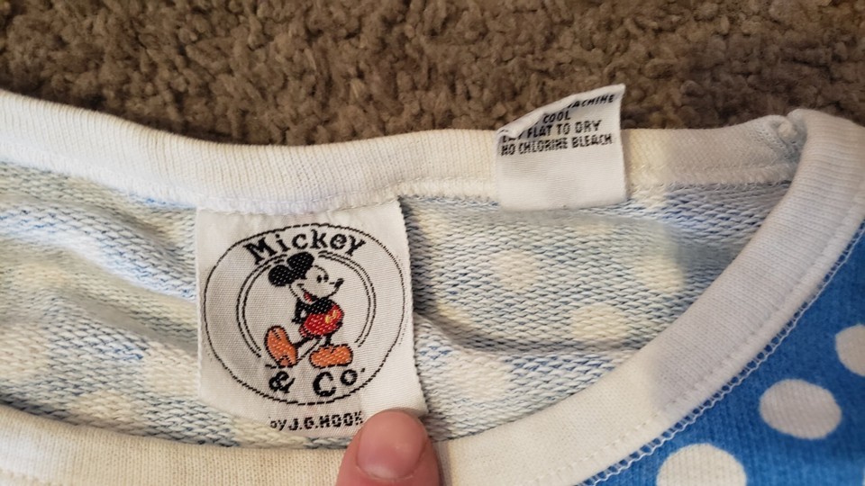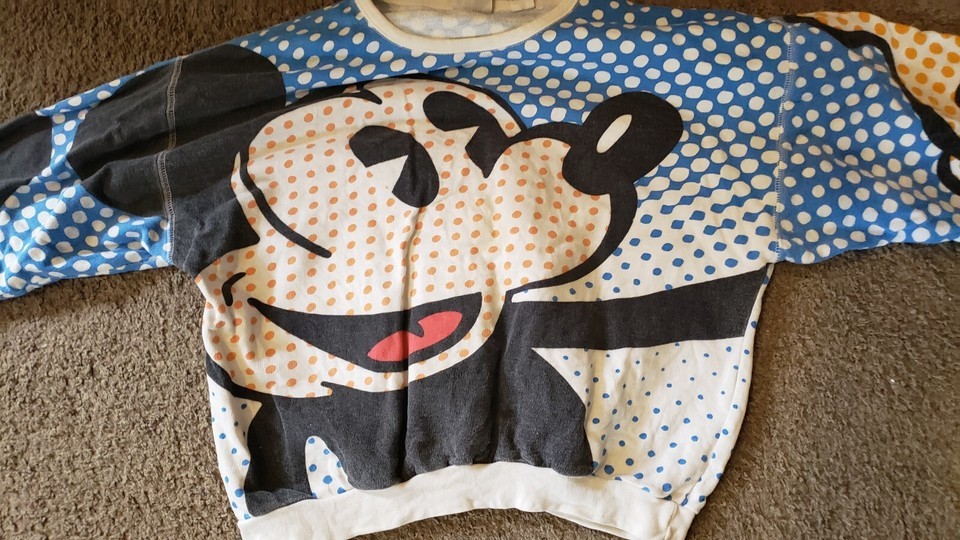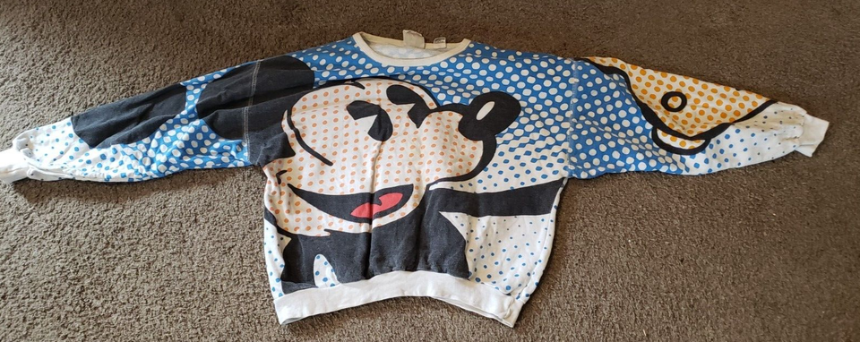 NICE Vintage 1980's Mickey Co. Mouse Sweater Polka Dot Blue Women's M Medium This is nice crop top style. Straight out of the 80's!! Literally. We got this from seized storage unit that had not been opened since 1990. Everything in this is old and from rich older single lady This seems a bit musty and may need washing. Measurements - 23-24 inches across the chest pit to pit 23 inches long 20-21 inches arm pit to cuff FREE SHIP