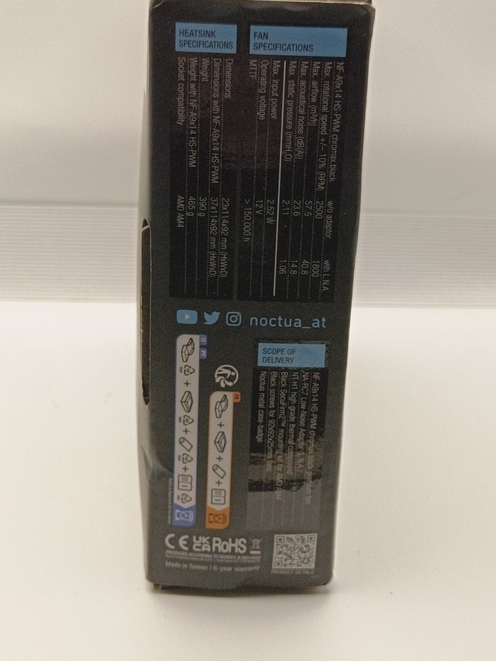 The Noctua NH-L9a-AM4 chromax.Black Low-Profile CPU Cooler is designed for AMD AM4 processors, offering a sleek and compact design in a black color scheme. This CPU fan features a ball bearing type and a maximum airflow volume of 339 CFM, ensuring efficient cooling performance. With a fan diameter of 120 mm and a maximum fan speed of 2500 RPM, this cooler provides effective thermal management for your AMD chipset - Northbridge. Additionally, it comes with a manufacturer warranty of 6 years and is made of durable plastic material, making it a reliable choice for your computer cooling needs.