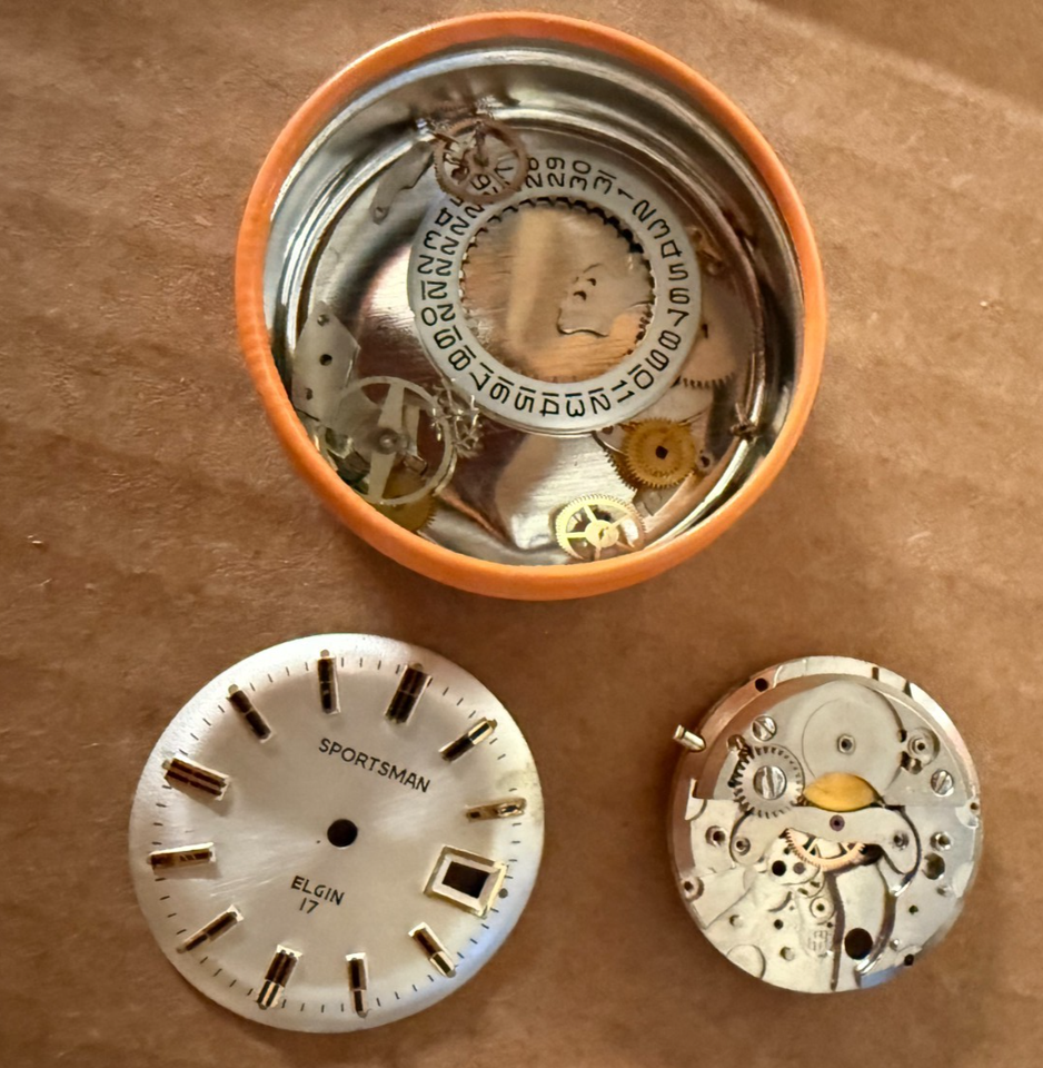 VTG 1960's 50s Elgin Sportsman Men's Watch Movement Dial Bezel LOT Silver 28.7mm
