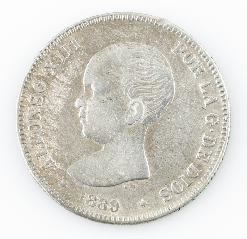 1889 Espagne 2 pesetas tres fin detail Alfonso XIII