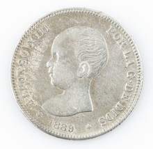 1889 Spain 2 Pesetas Silver Very Fine Detail and 29 similar items