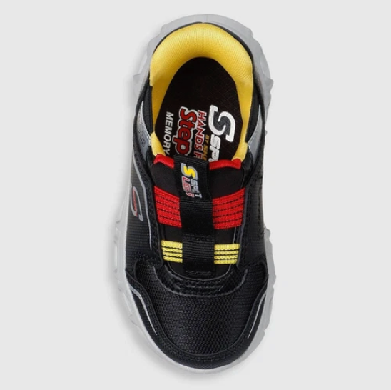 Simply step in and go with bold style and comfort wearing S Sport by Skechers Kids' Kaleb shoe. Designed with Skechers Hands Free Step-Ins, this sporty casual sneaker features a synthetic upper, stretch twin gore crossband front, S Sport by Skechers Memory Foam cushioned insole, shock-absorbing light-up midsole and flexible outsole.