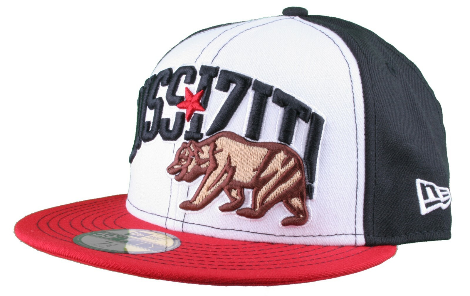 This is for a brand new Dissizit NEW ERA Fitted 59FIFTY white/red/black Collegiate CALI Bear Hat Cap NEW ERA 59FIFTY Dissizit! fitted hat features a black and white crown, red brim, NEW ERA logo on the side and large black Dissizit logo lettering and a brown California Bear embroidered on the front. Dissizit! - The Streets, Hip Hop, Graffiti Graphic Pioneers. Legendary status in this game for over 20 years producing nothing short of modern classics.