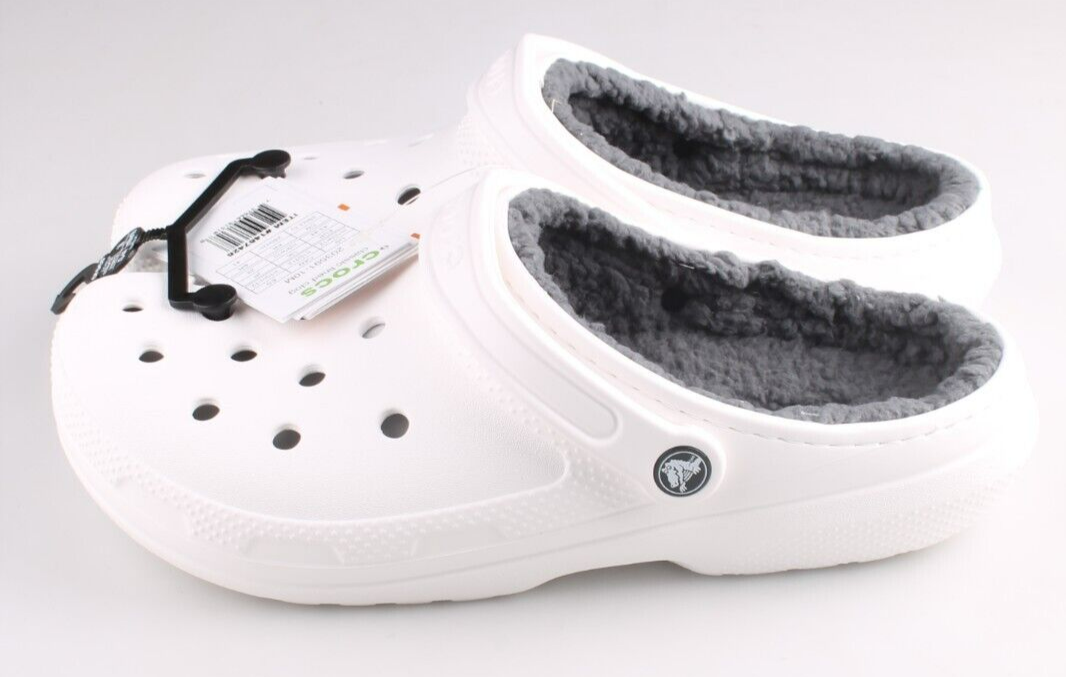Crocs Clásico Forrado Zuecos Unisex Talla US M10 W12 Blanco Gris De con Etiqueta