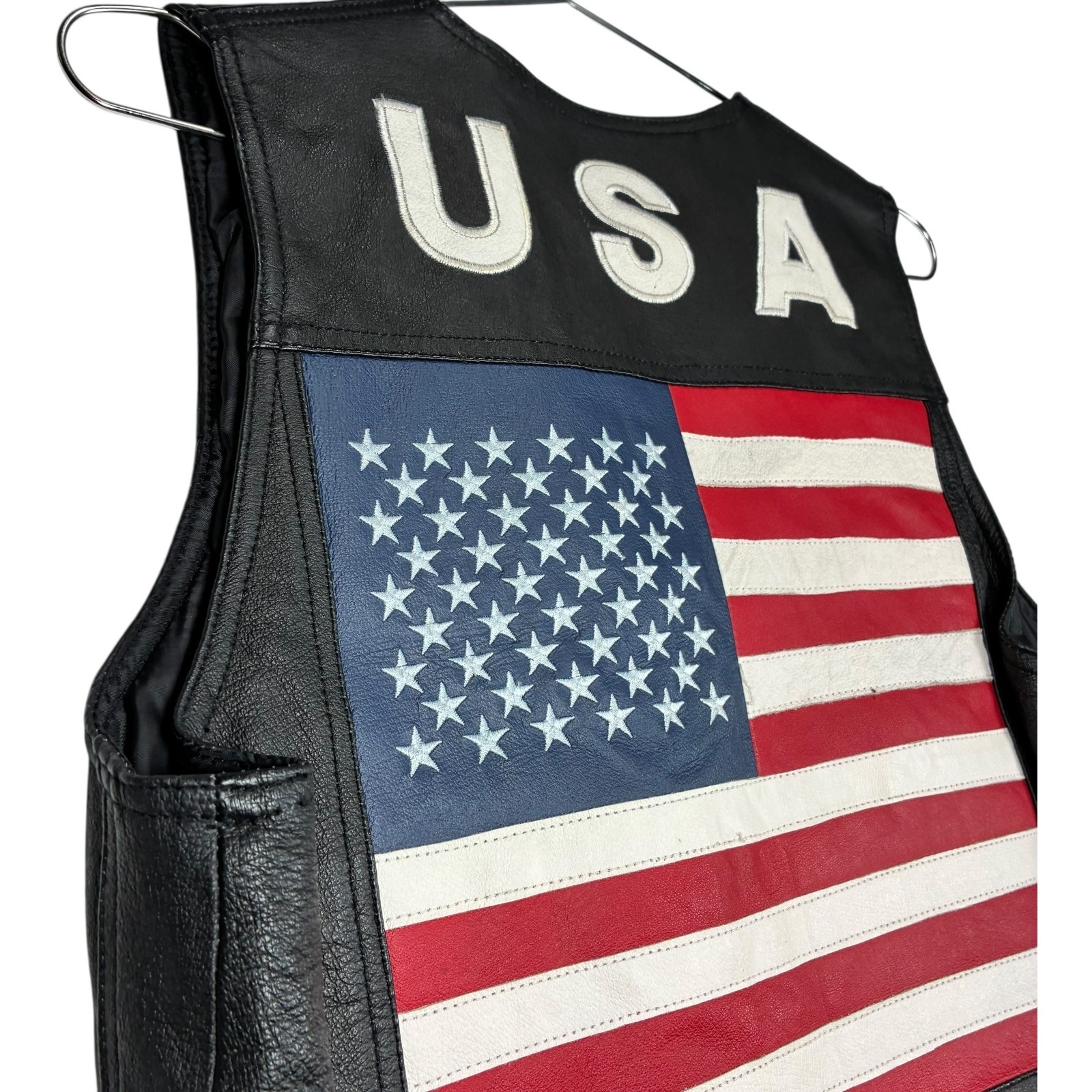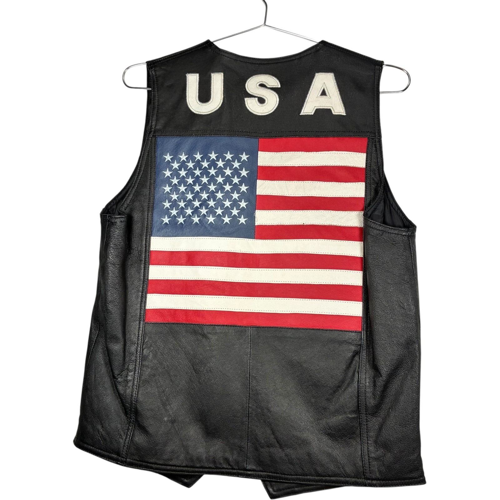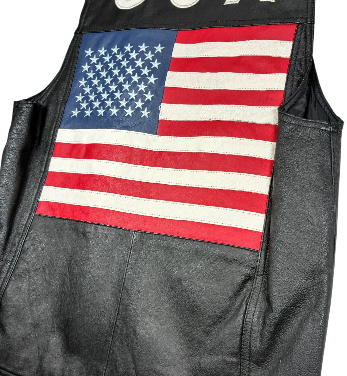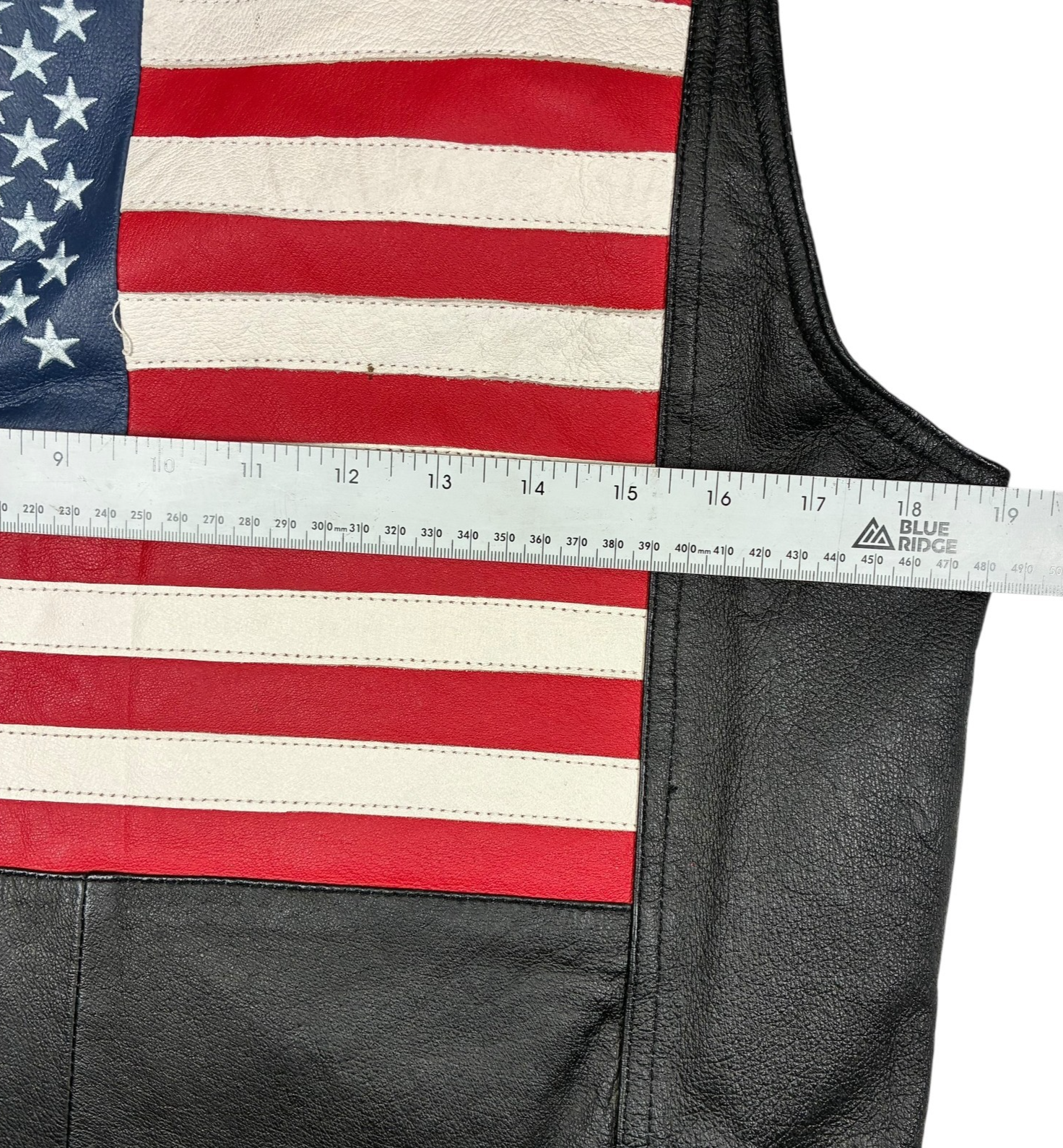 Bikers Dream Apparel Lined Button-down Black Leather USA Flag Vest Men's size S