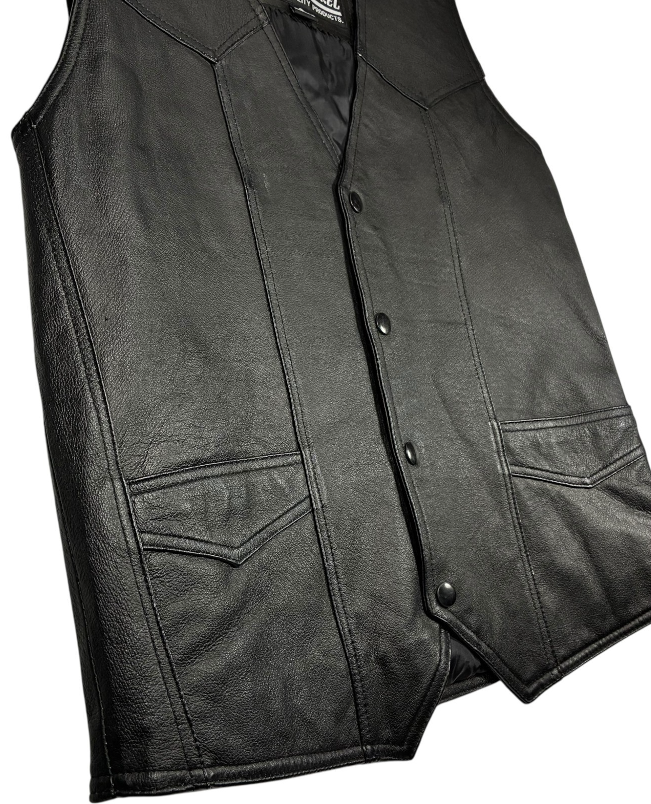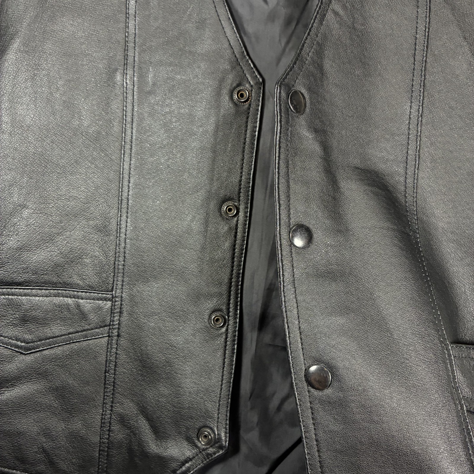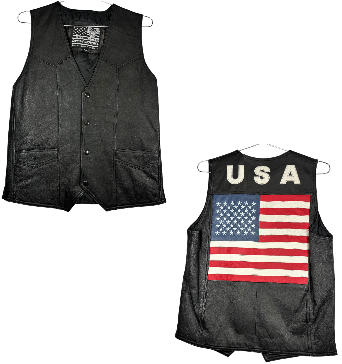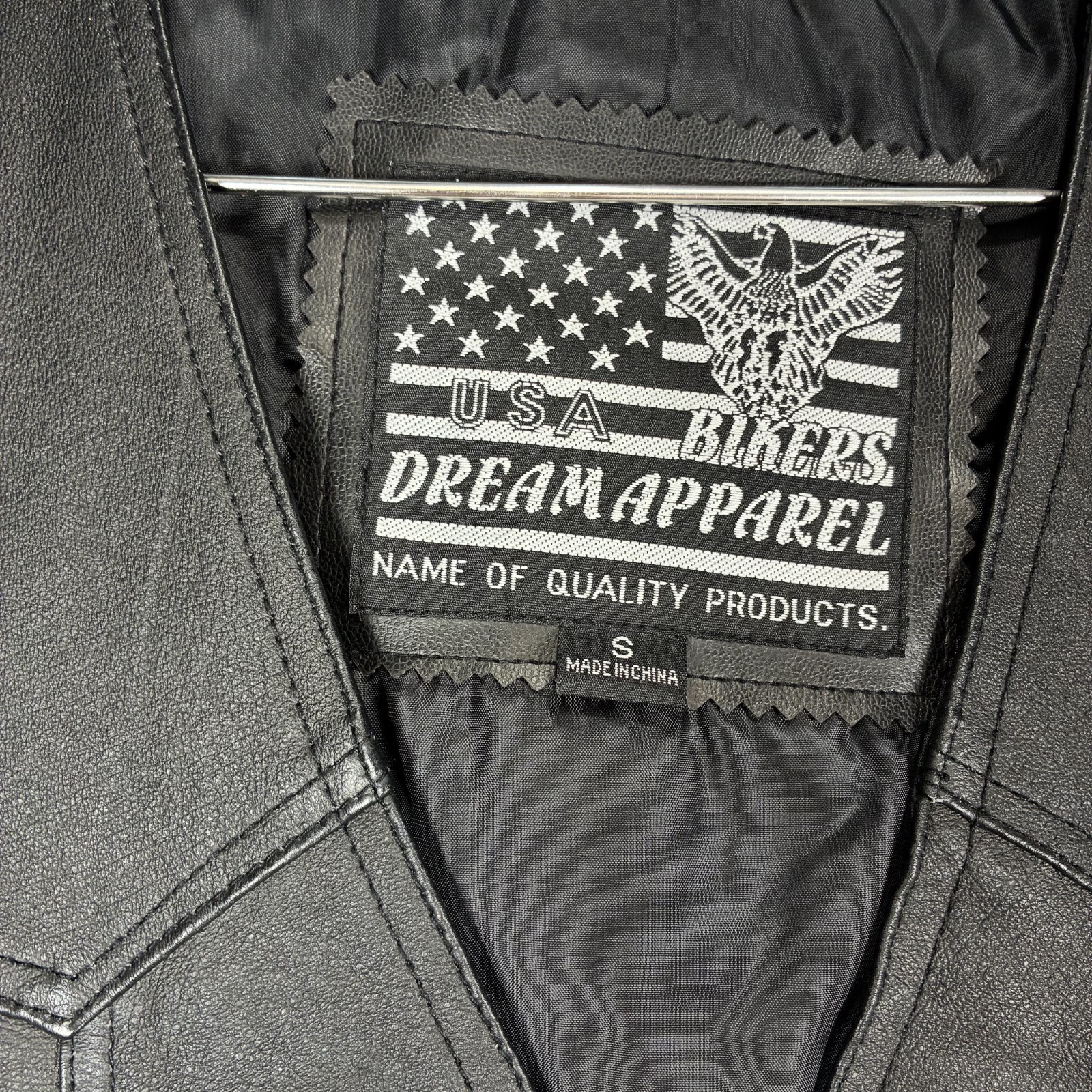 Bikers Dream Apparel Lined Button-down Black Leather USA Flag Vest Men's size S