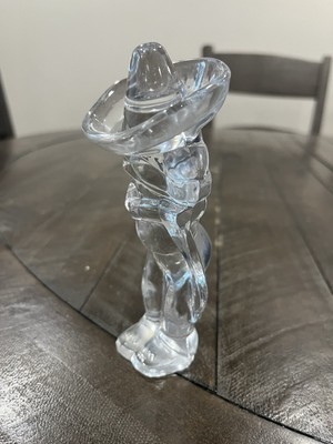 This vintage Duncan Miller Glass Company figurine features a beautiful Peon character made of crystal. The handmade piece is rare and has a chip, which adds to its unique character. The figurine is perfect for collectors of decorative sculptures and figurines, and would make a great addition to any home decor.