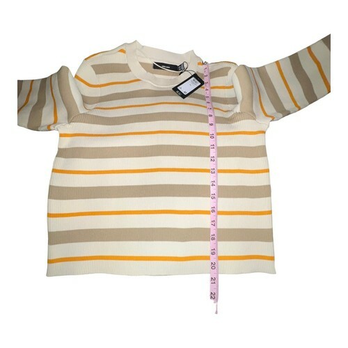 VERO MODA ANITA STRIPED RIBBED CROPPED O NECK BLOUSE SPICY MUSTARD SIZE XXL NEW