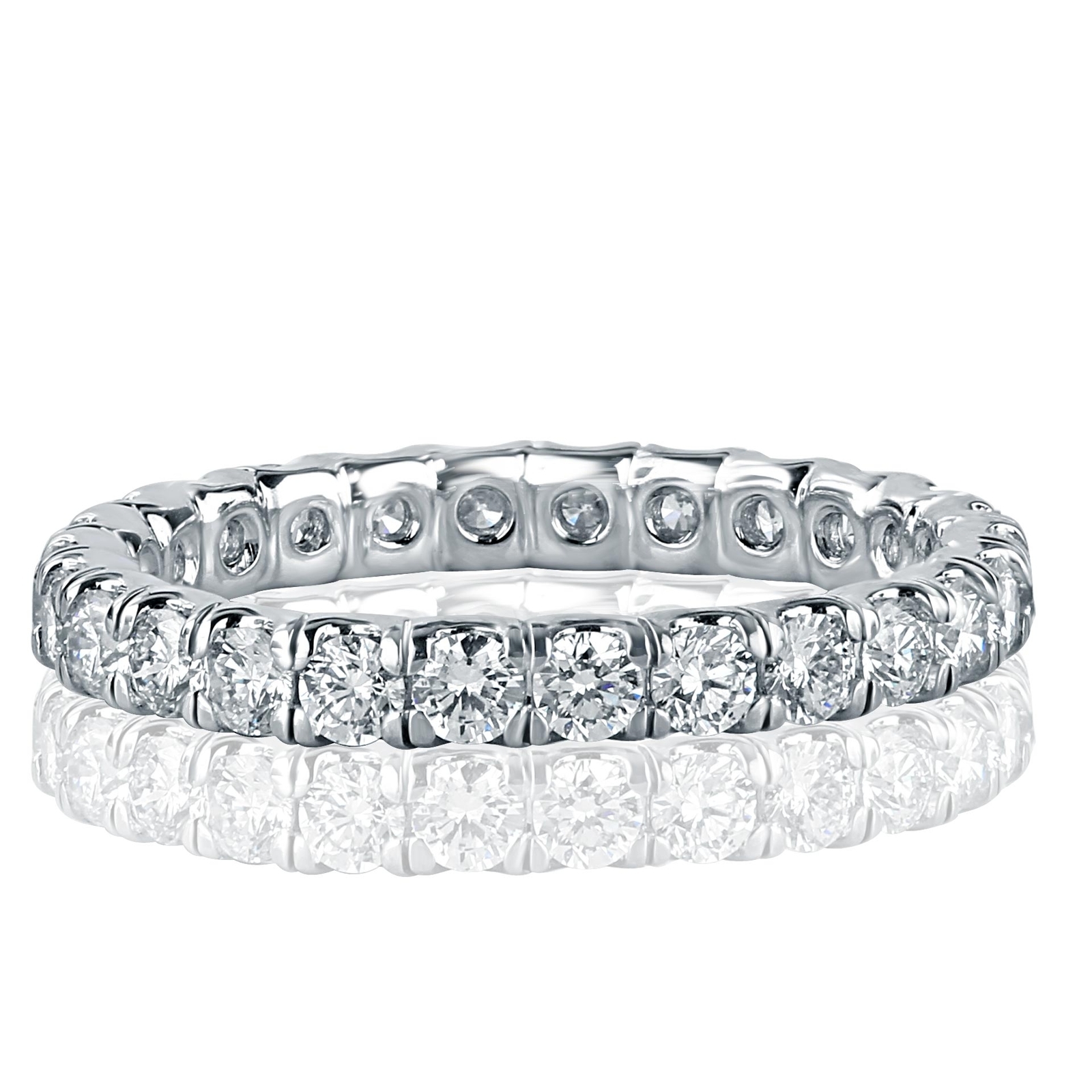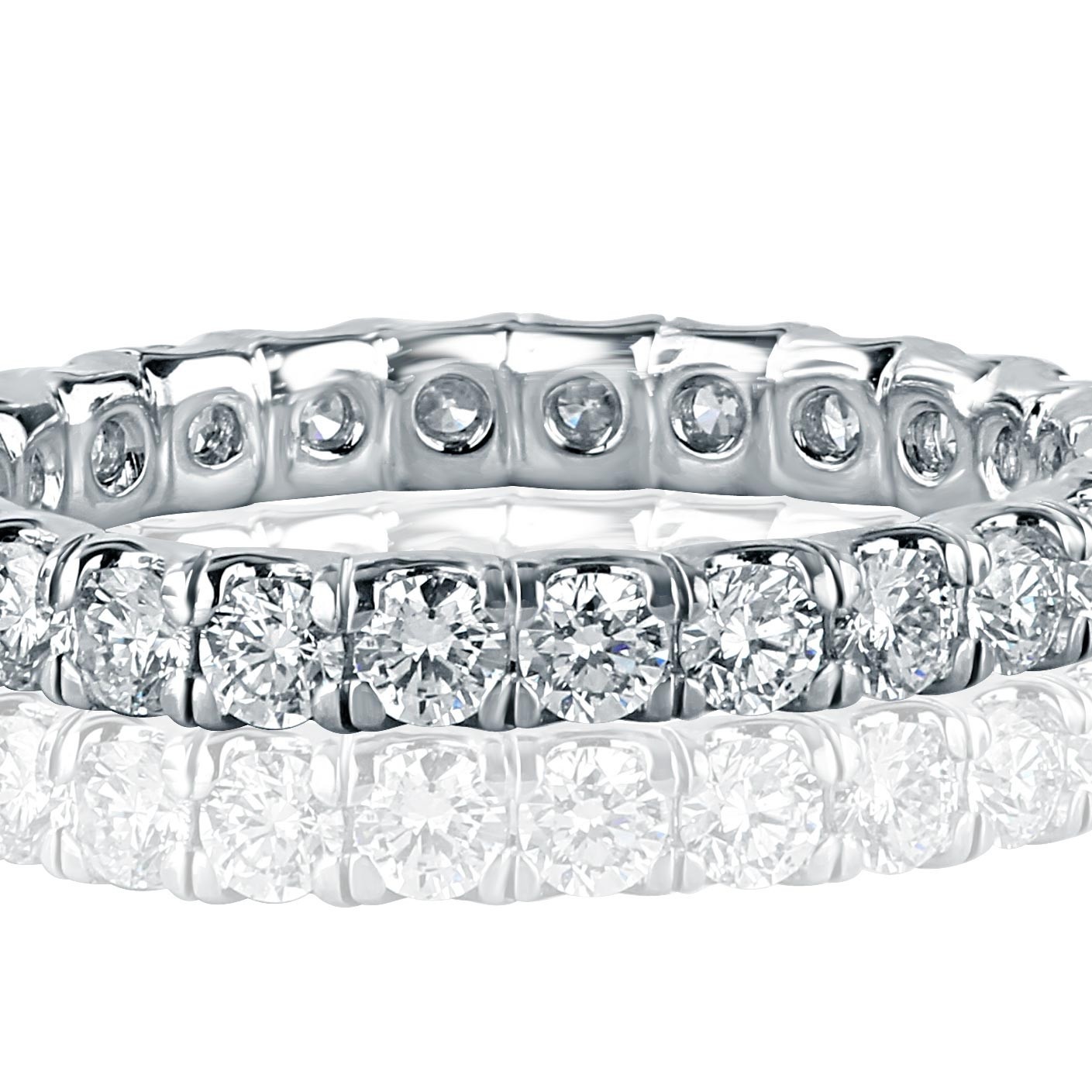 Classic Diamond Eternity Band presenta 26 diamantes de corte redondo bellamente combinados en un entorno de punta. El peso total de quilates es 1.32. Hecho a mano en oro blanco de 18 quilates. El aniversario perfecto o la alianza de bodas.